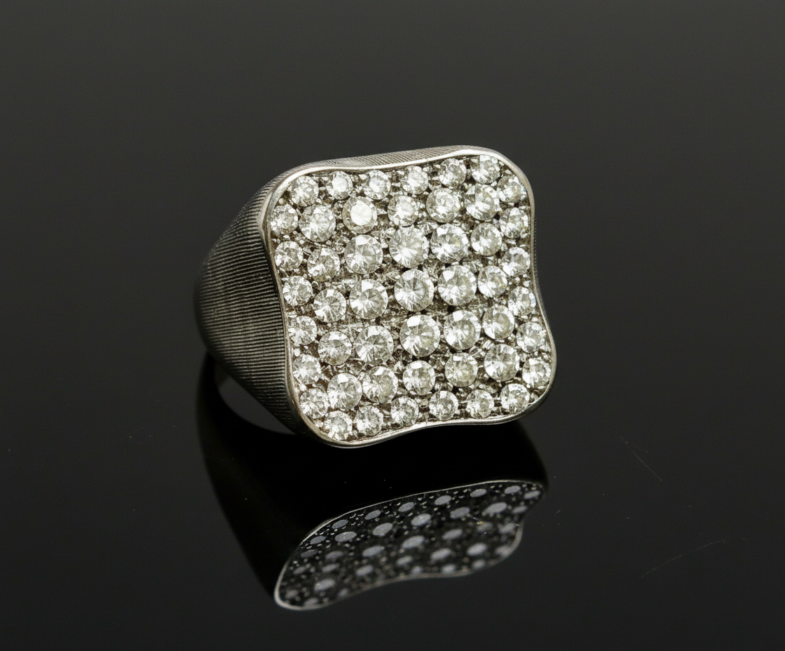 Aggiungi un tocco di eleganza al tuo look classico con questo splendido Anello da Mignolo con Diamanti, Anni Sessanta. Realizzato in pregiato oro bianco 18k e impreziosito da un pavé scintillante di diamanti naturali di taglio "huit huit" da 1,70 carati, questo pezzo senza tempo è sia lussuoso che resistente. Con un peso lordo di 11,85 grammi, è l'aggiunta perfetta a qualsiasi ensemble elegante.
