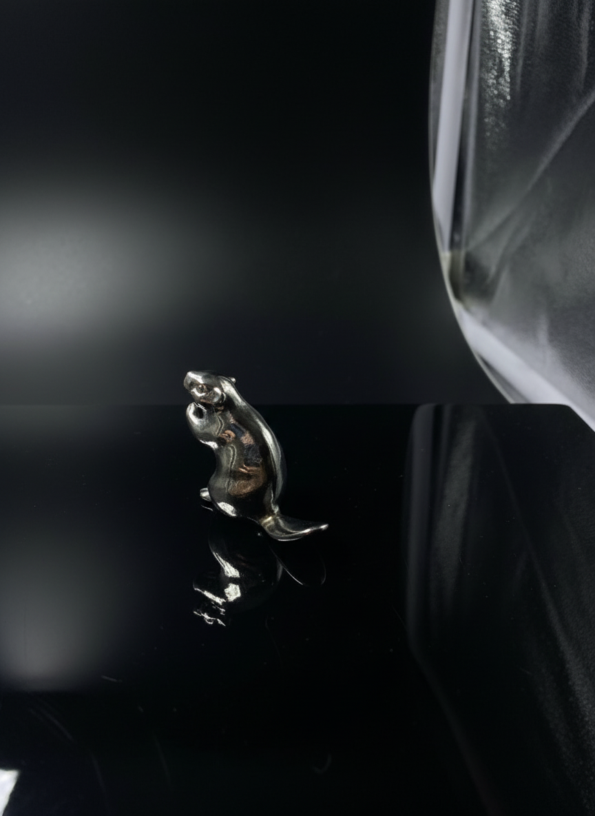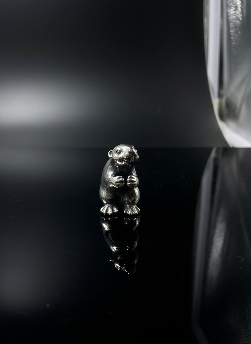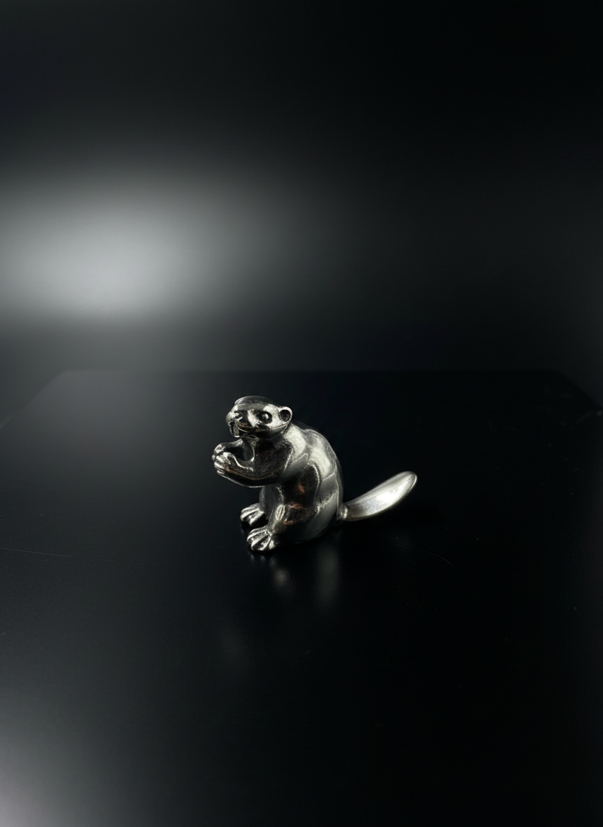 Un castoro in argento 800, realizzato con maestria artigianale e destinato ai collezionisti più esigenti, si distingue per la sua forma elegante e dettagliata. La figura cattura con precisione l’aspetto caratteristico del tasso, con particolare attenzione alla grande coda piatta, resa con finezza e realismo.