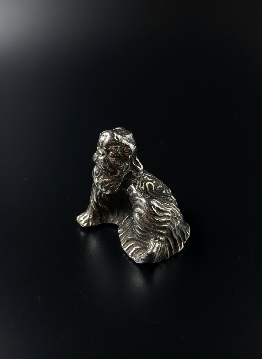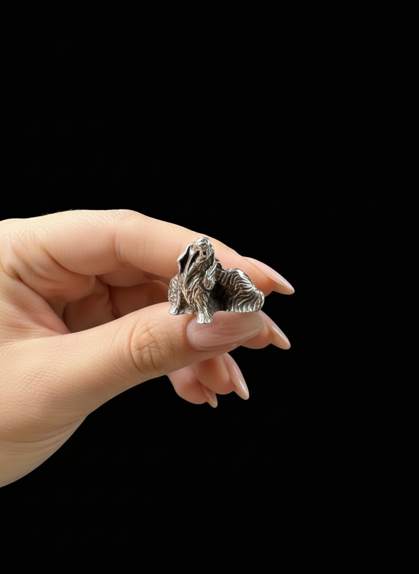 Perfetto per collezionisti, amanti dei cani o come oggetto decorativo di pregio, questo Cocker in argento unisce realismo, raffinatezza e qualità artigianale in un pezzo unico e senza tempo.