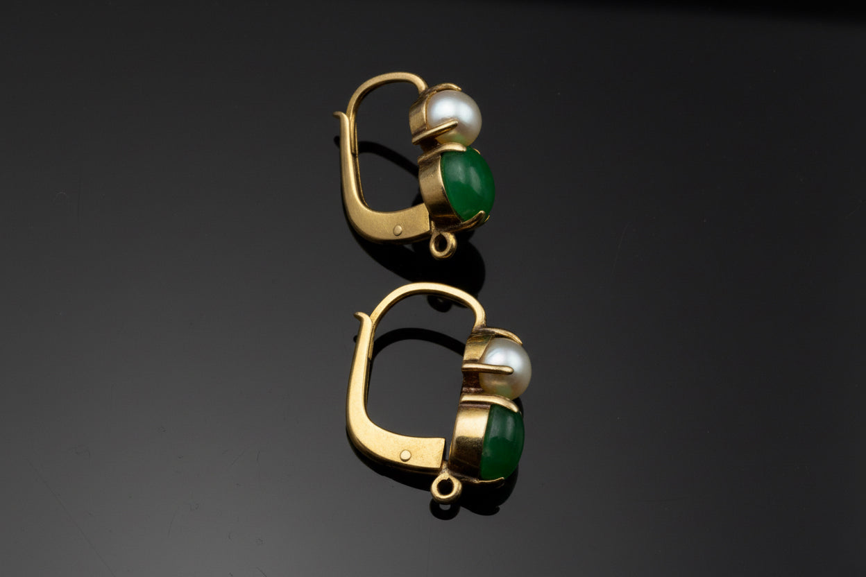 A completare la composizione, un delicato inserto di perla coltivata naturale, diametro 5 mm., che sovrasta lo smeraldo, creando un raffinato contrasto tra la profondità del berillo e la morbida luminosità della perla.
