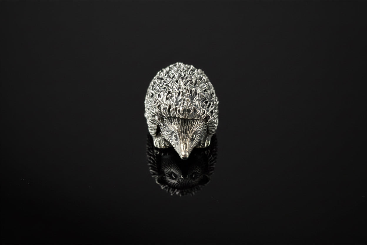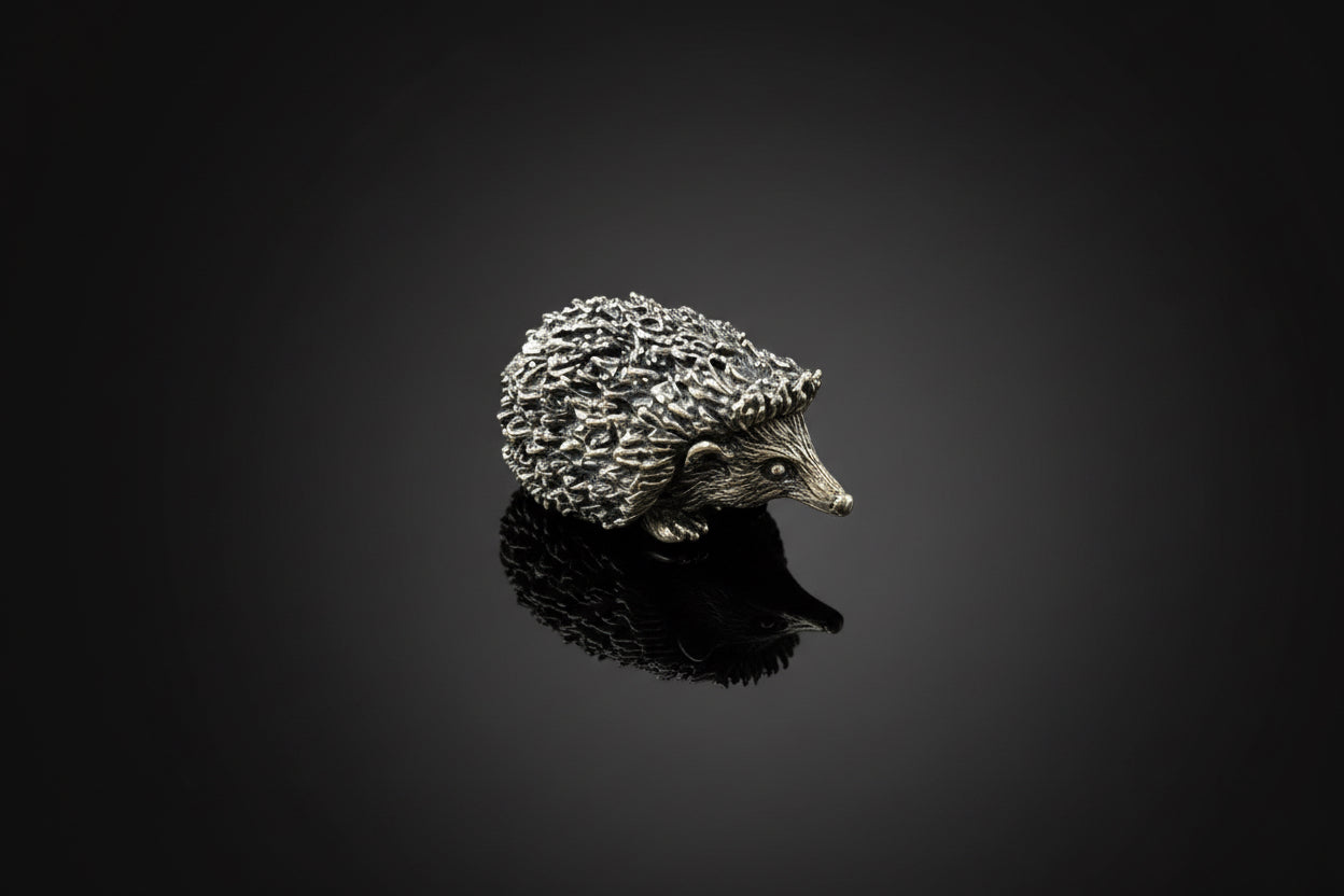 La figura del riccio è riprodotta con grande realismo: le delicate incisioni richiamano fedelmente gli aculei, mentre le proporzioni armoniose e l’espressione naturale conferiscono alla scultura un carattere autentico e piacevole. La lavorazione accurata valorizza ogni particolare, rendendo il pezzo elegante e ricco di personalità.