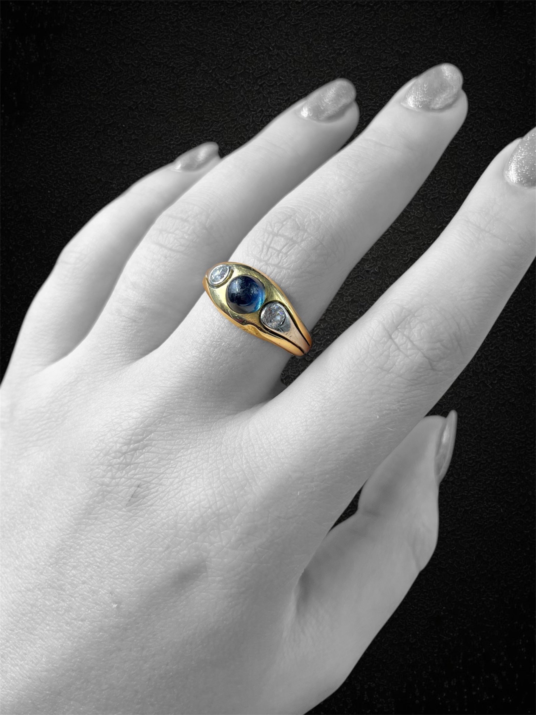 Anello a Fascia con Zaffiro Cabochon e Diamanti