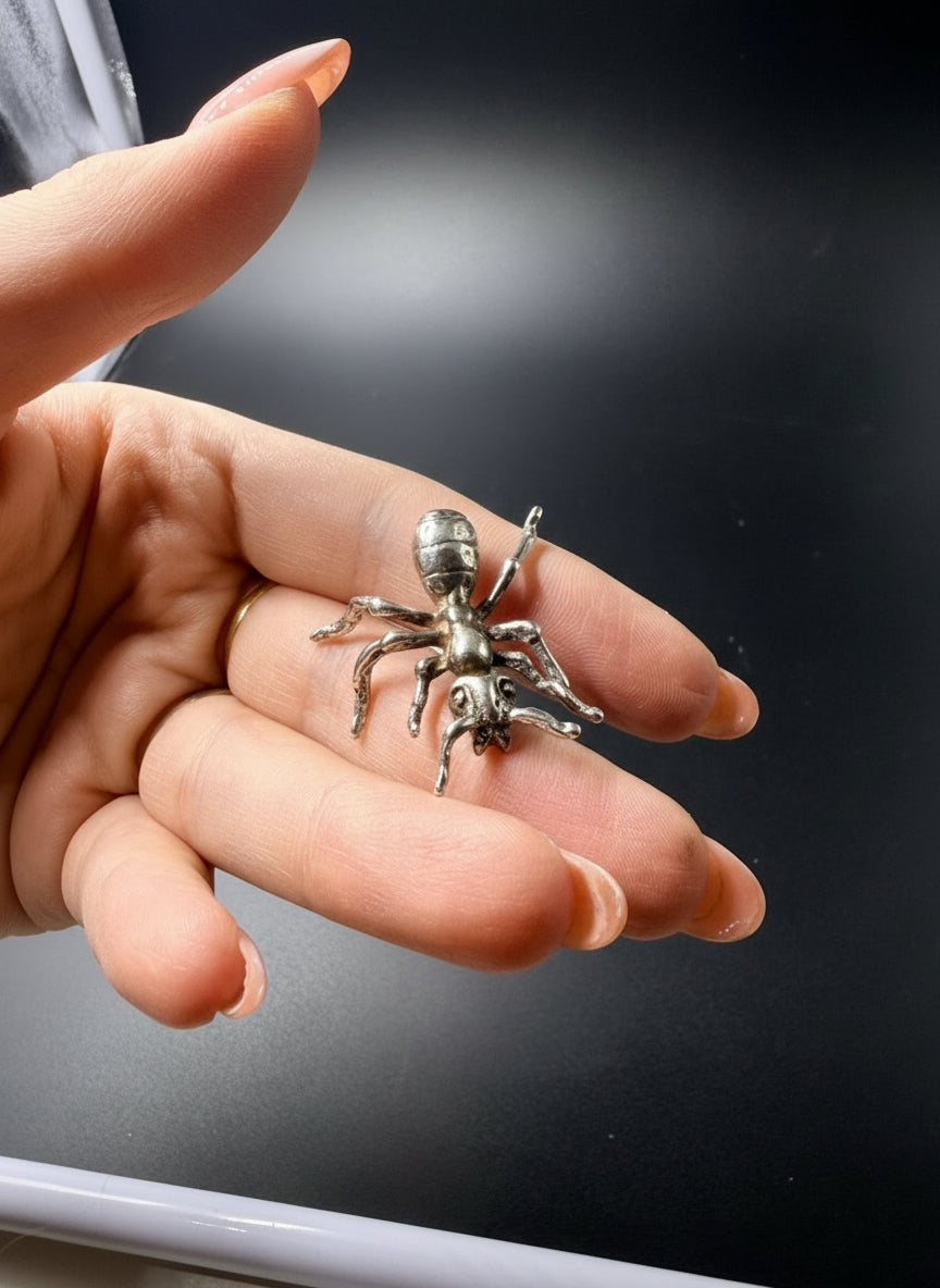 Una formica in argento 925 dal design straordinariamente realistico, pensata per gli appassionati di collezionismo e di sculture in miniatura. Ogni dettaglio del corpo, dalle zampe sottili alle articolazioni perfettamente modellate, fino alla testa e alle antenne, è riprodotto con precisione, rendendo l’oggetto incredibilmente fedele alla natura.