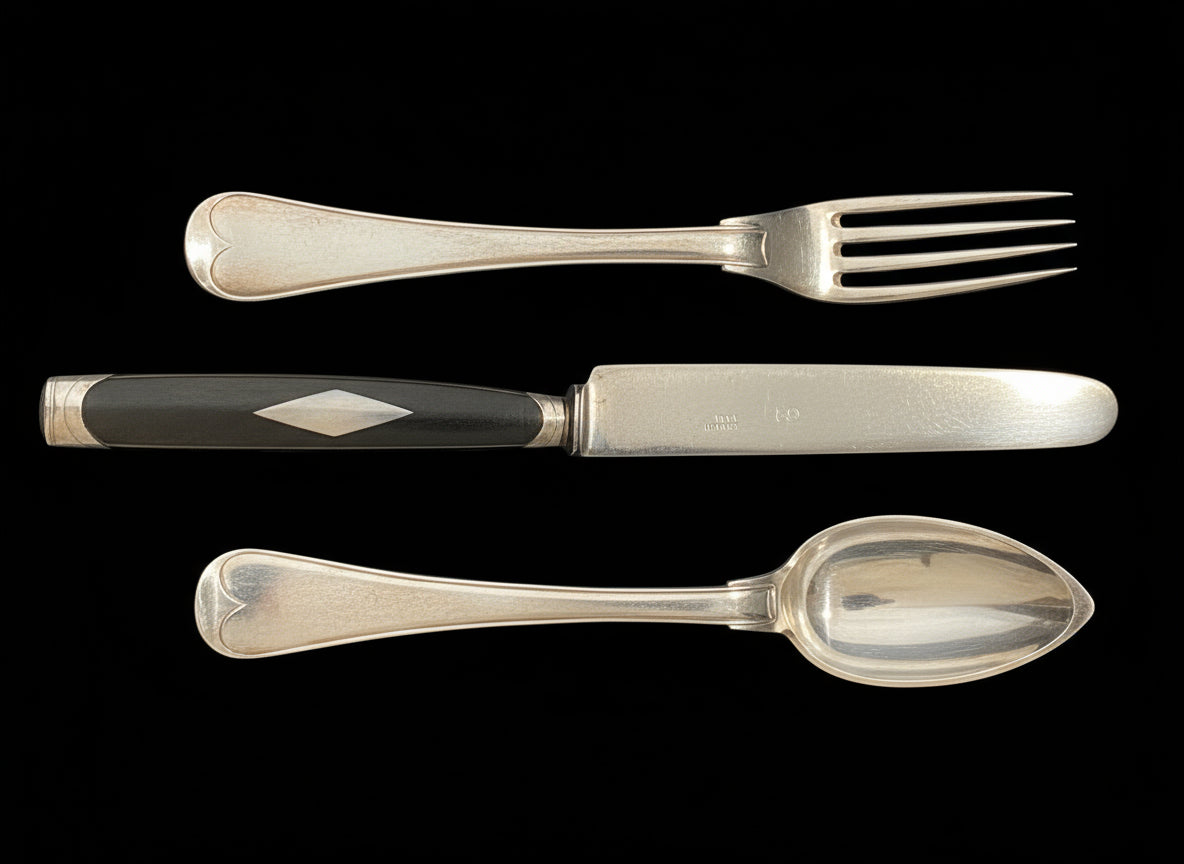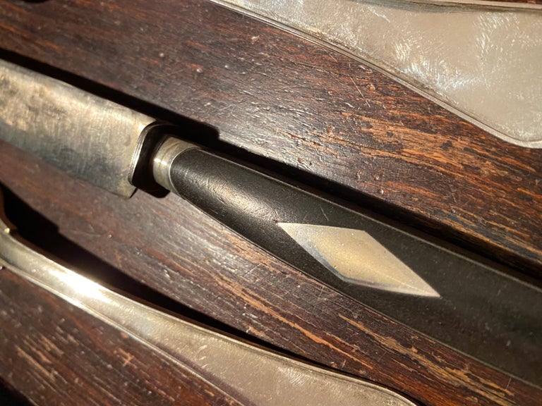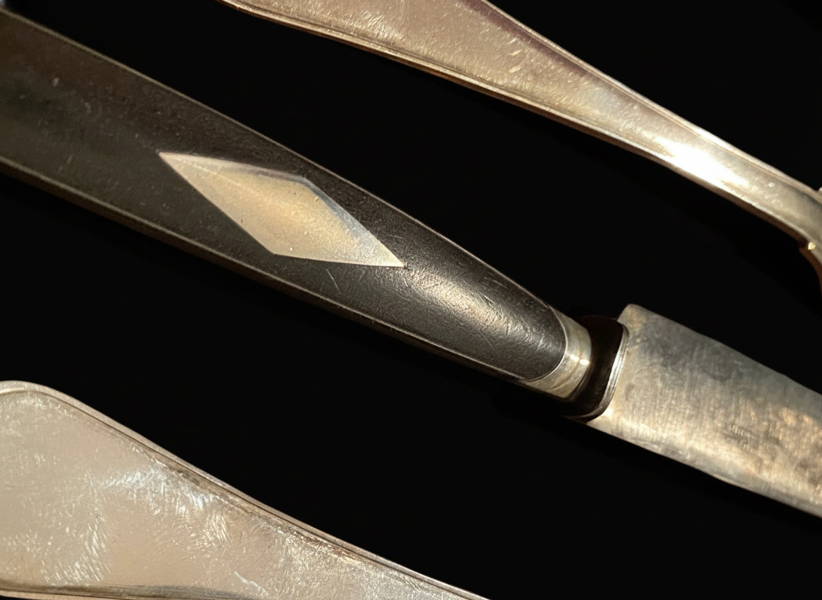 Complete with forks, spoons, and knives (featuring ebony handles) for 12 people, as well as a large soup ladle, two generous vegetable spoons, and a fork and roast knife.