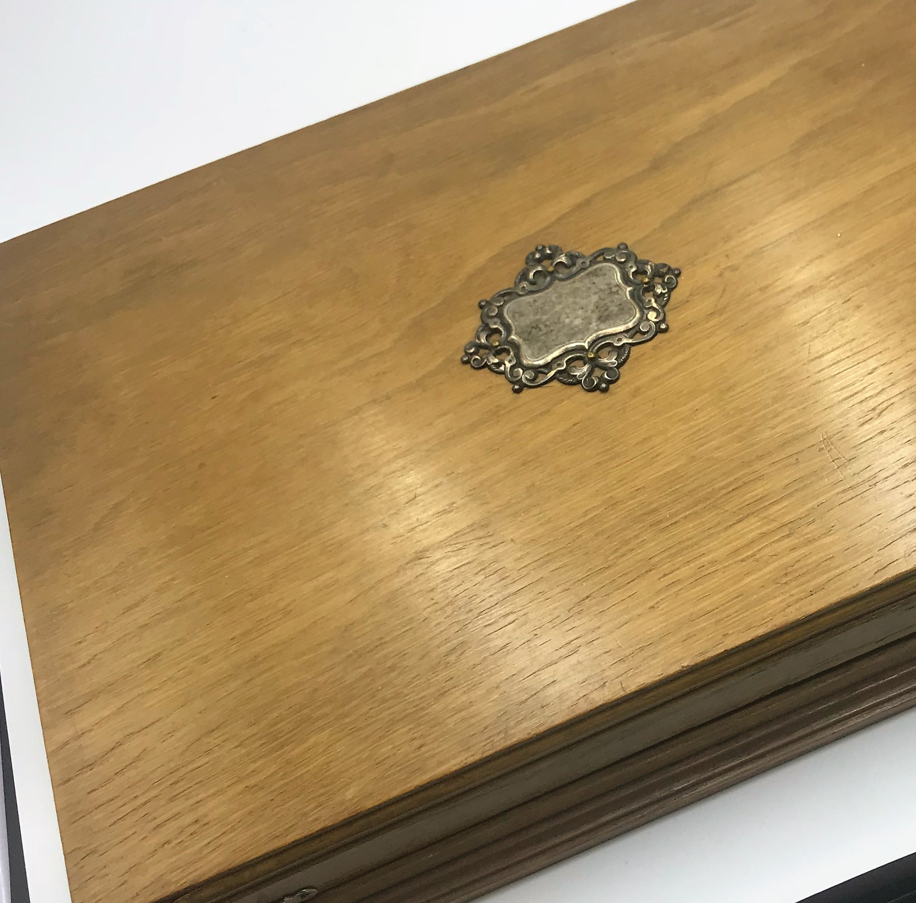 This beautiful wooden box holds a remarkable collection of 12 tea spoons, made from 830/1000 silver. Each piece proudly displays the Austro-Hungarian mark, dating back to the period between 1872 and 1912. The box itself is in impeccable condition, adorned with the signature of "Guglielmo Bruni Gioielliere" from Triest, Italy. A truly unique and precious find for tea enthusiasts and collectors alike.