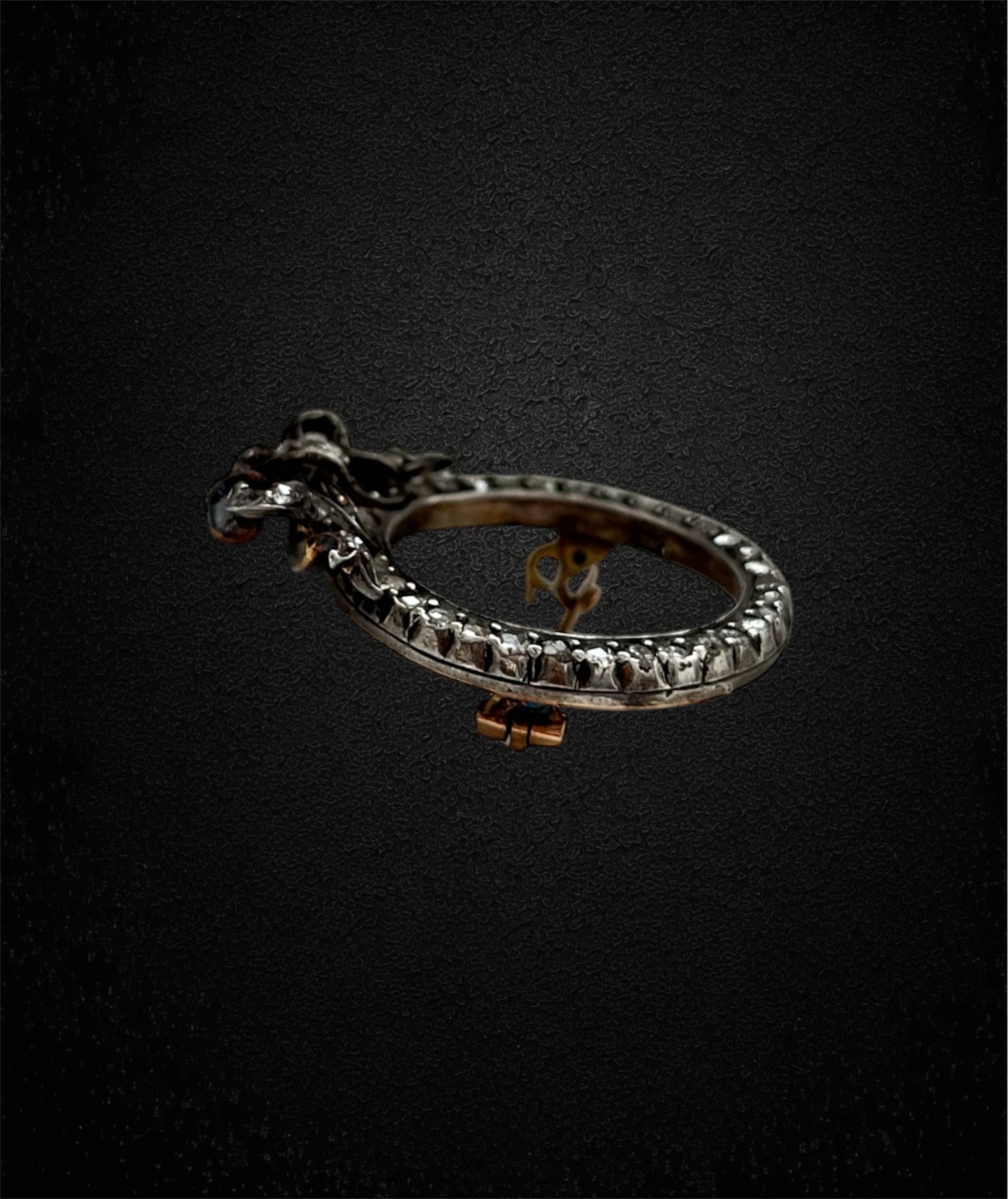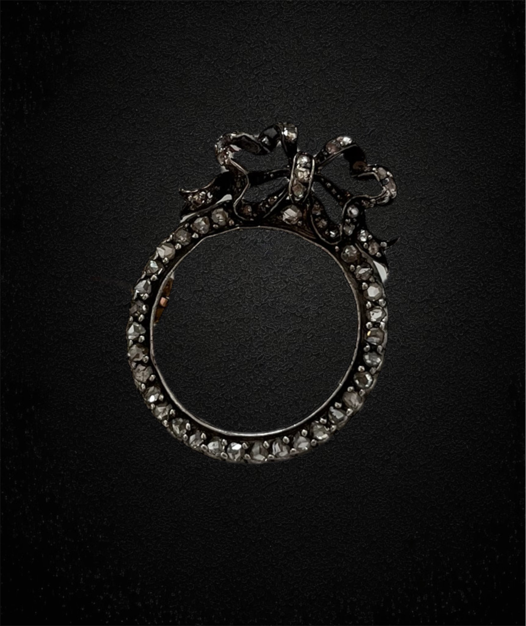 Crafted with rose gold and silver, this elegant piece features stunning rose-cut diamonds.