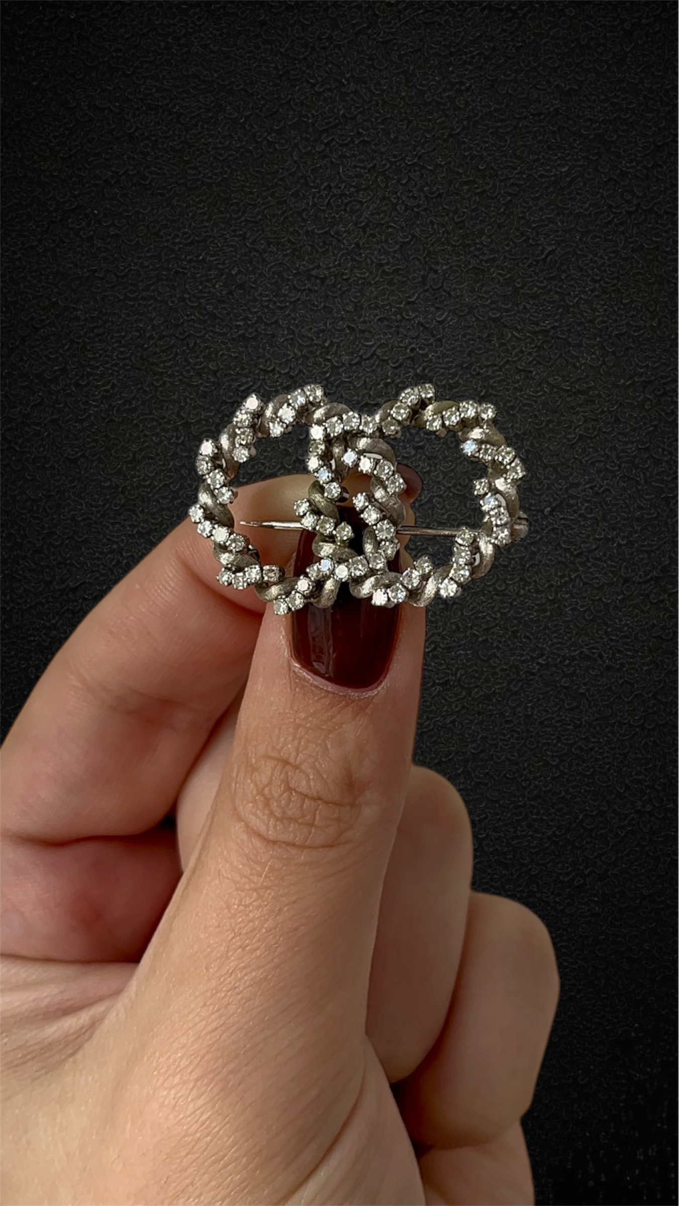 A timeless piece of elegance crafted in Italy during the 1960s. Made from 18 kt white gold, this exquisite brooch showcases a double circle design adorned with 72 huit-huit cut diamonds, each weighing 0.02 ct. With a total diamond carat weight of 1.44 ct, this brooch radiates sophistication. Its diamonds boast a beautiful color grade of I and clarity grade of VVS2, adding a touch of luxury to any outfit.