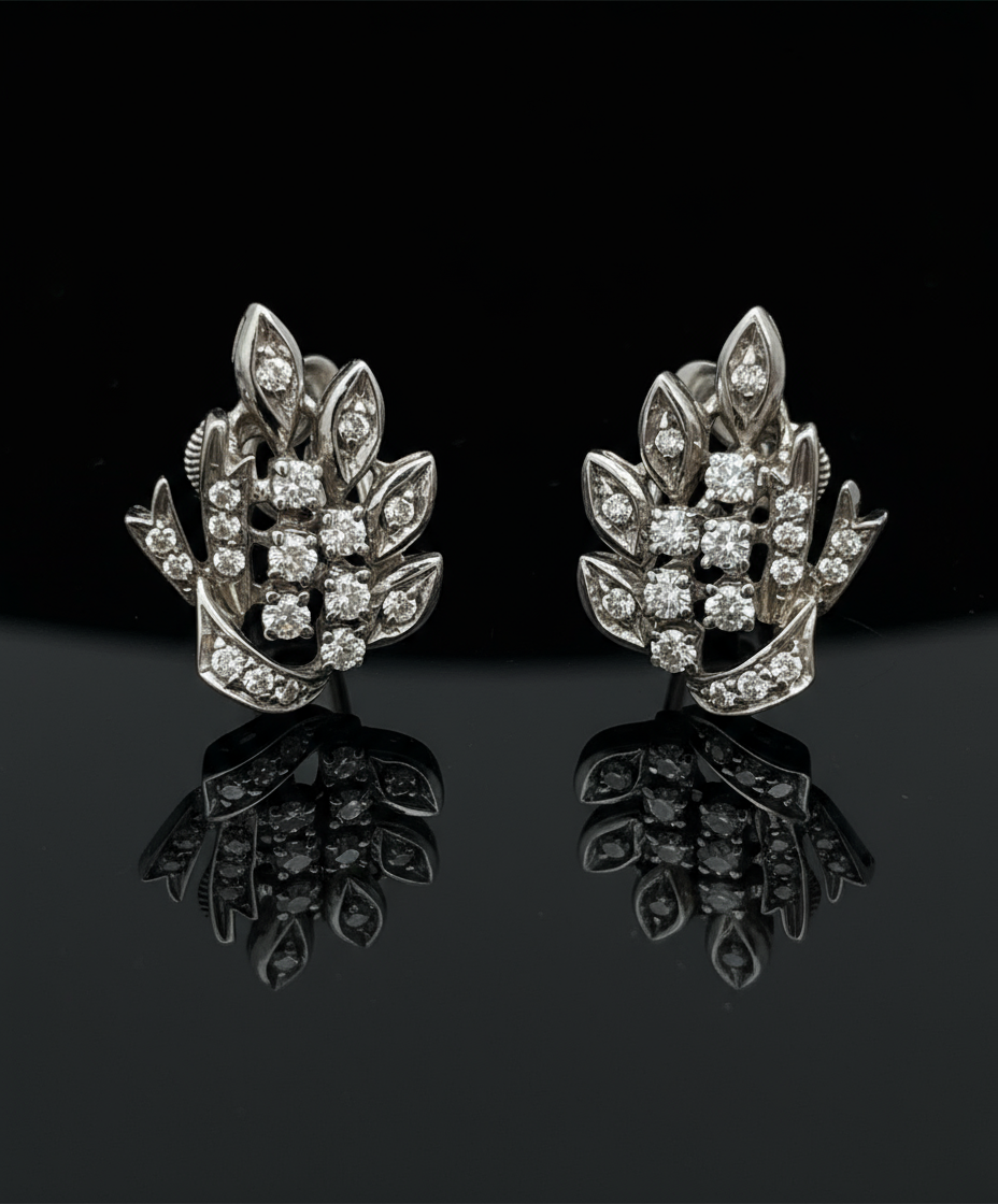 Questi orecchini in oro bianco 18K firmati De Lazzari, chiamati Oro Addosso, sono un'elegante espressione della gioielleria italiana degli anni '90. Ispirati alla bellezza della natura, con una sinuosa forma di foglia che dona leggerezza e armonia al gioiello, sono dotati di una chiusura a clip con ago per garantire una vestibilità sicura e confortevole. Sono impreziositi da un totale di 18 diamanti di taglio brillante per ogni orecchino, sei dei quali disposti su due file per catturare la luce e donare luminosità, mentre altri dodici sono elegantemente incastonati lungo il profilo delle foglie, per esaltare il movimento e il dettaglio. Dotati di una caratura complessiva di di 0,55 ct per orecchino, questi gioielli uniscono l’eccellenza dell’alta oreficeria italiana con un’eleganza senza tempo, perfetti per chi ama dettagli preziosi e sofisticati.