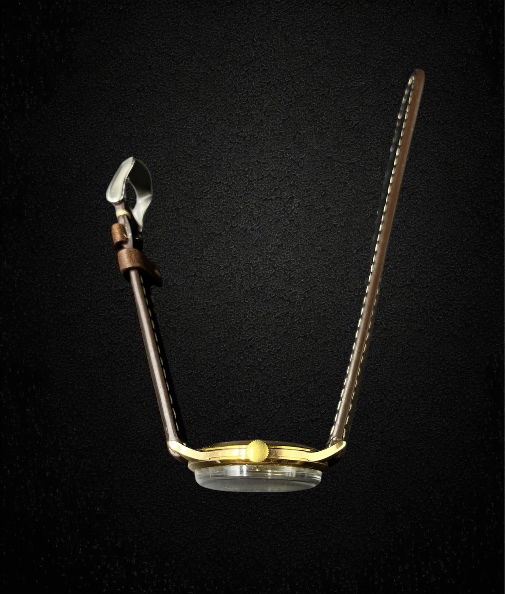 Questo straordinario Longines della fine degli anni Cinquanta è un omaggio all'equilibrio perfetto tra estetica e ingegneria svizzera. La sua cassa in oro 18 carati, dal diametro di 35 mm, cattura la luce con una calda brillantezza, mentre il quadrante argenteé microrighettato riflette la raffinatezza di un'epoca in cui nulla era lasciato al caso.