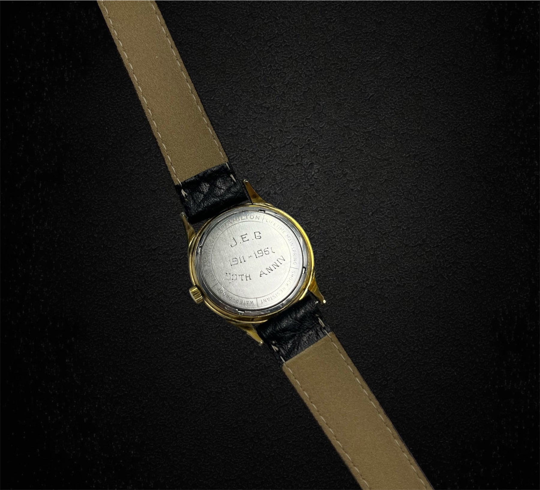 Con una cassa laminata in oro 10K e un fondello in acciaio inossidabile, questo orologio è progettato per resistere alla prova del tempo.