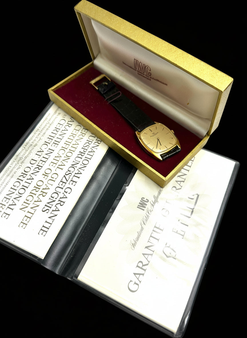 Straordinario IWC Schaffausen degli anni '70, modello ref. 2770, un capolavoro dell'orologeria svizzera che rappresenta l'eccellenza tecnica e stilistica del marchio.