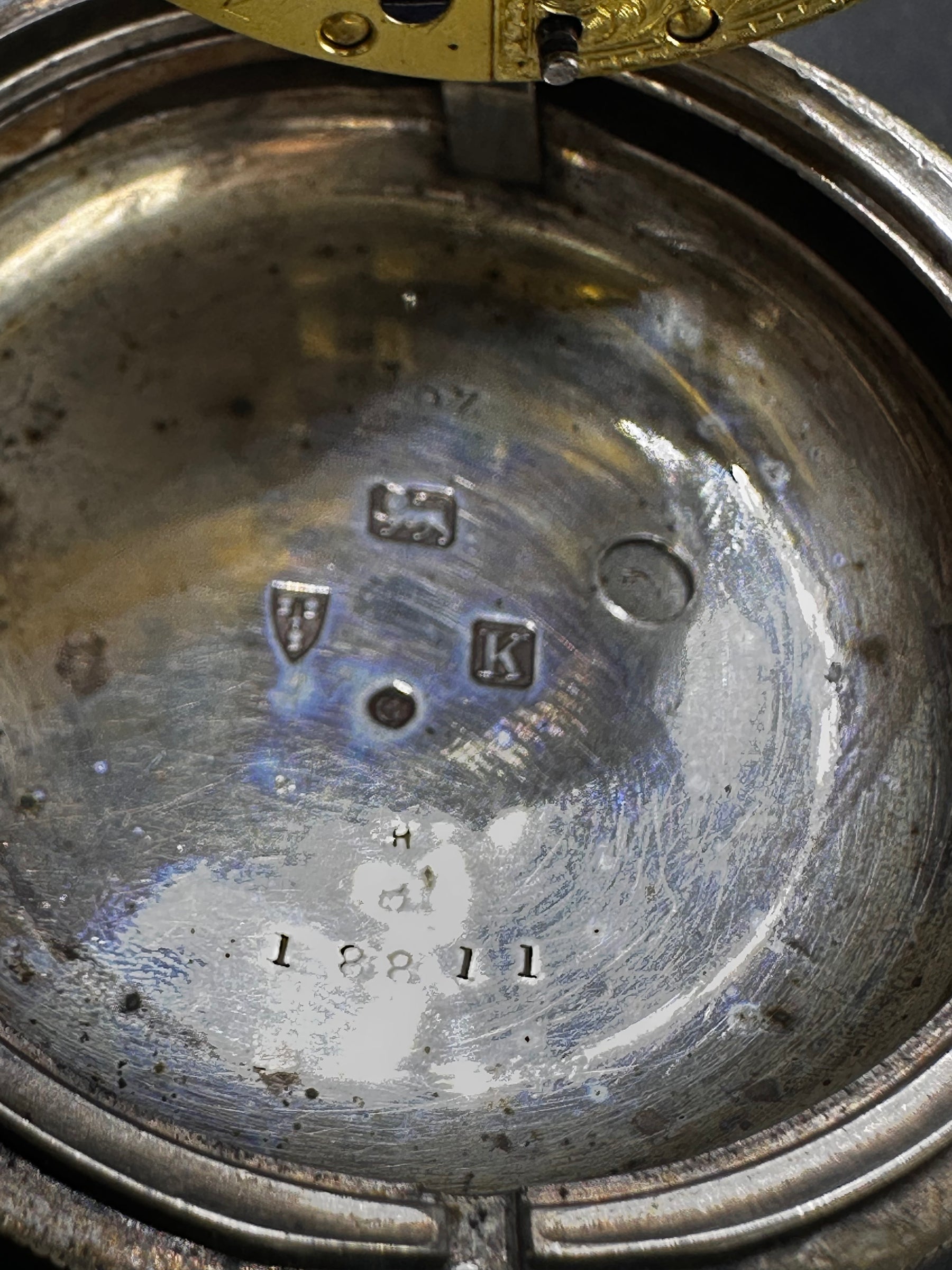 Si tratta di un interessante esempio di orologio da tasca inglese di inizio XIX secolo, con cassa punzonata Chester, che conferisce valore collezionistico e storicità. Il movimento dorato con scappamento a verga e bilanciere monometallico rappresenta la tecnologia tipica dell’epoca, rendendo l’orologio sia un pezzo funzionale che un oggetto da collezione.