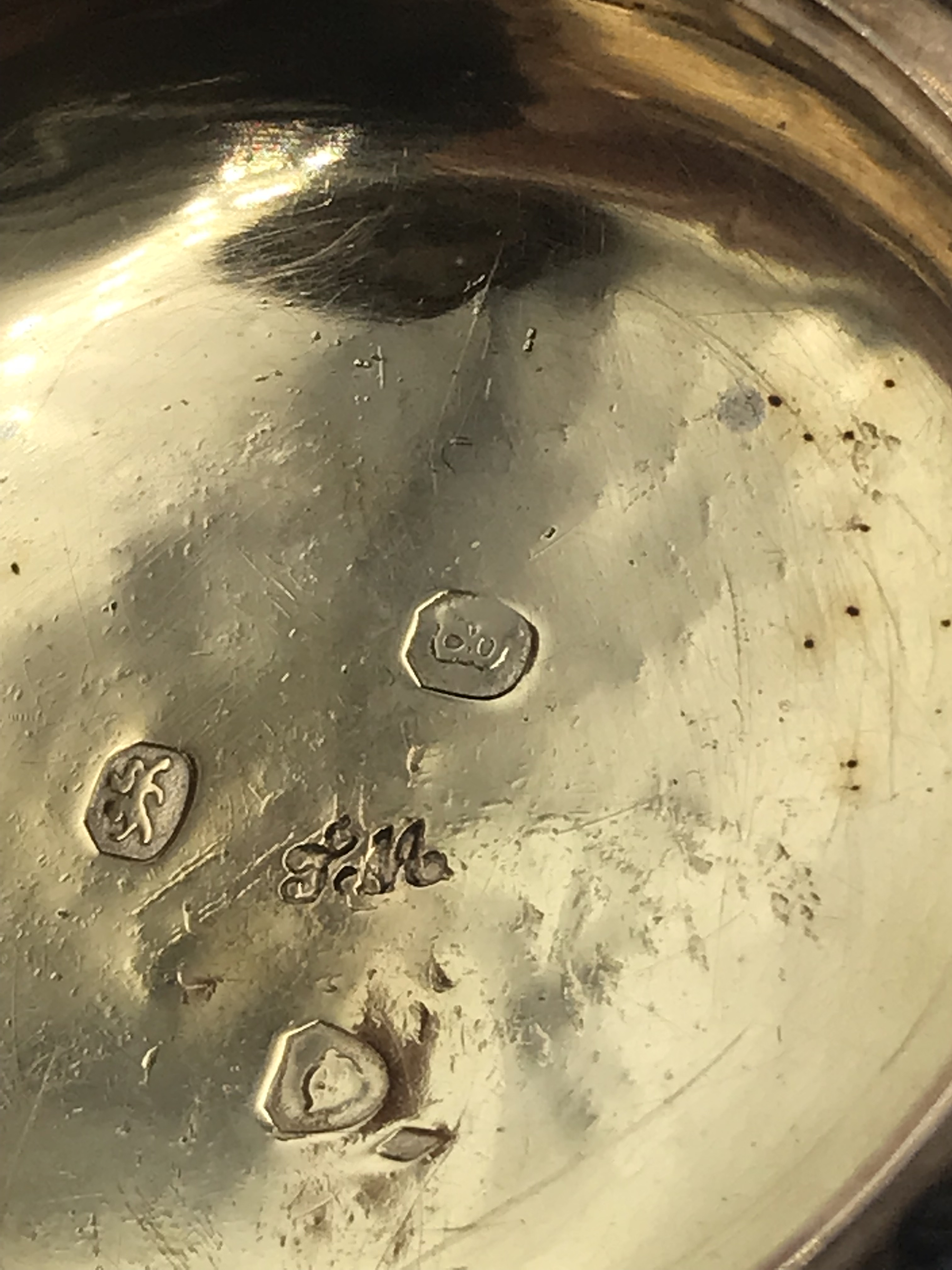 Adorned with a hallmark that signifies the quality of the metal, the city of London, and the date, the casing is meticulously fashioned from 925 silver with hints of old gold plating, creating a unique and luxurious appeal.