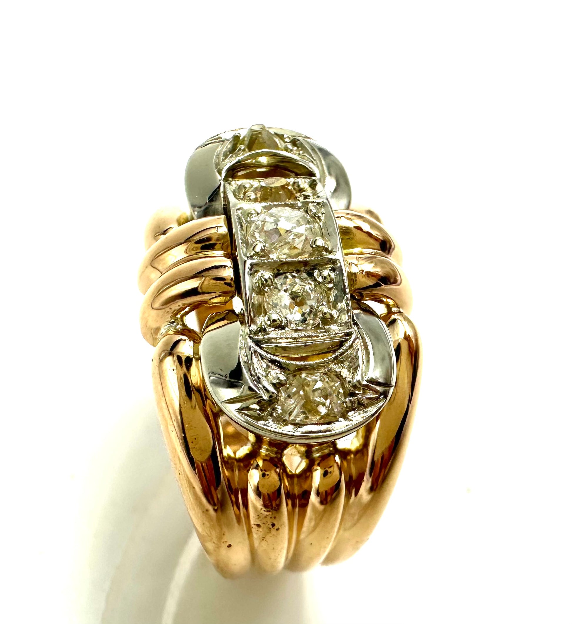 Crafted in luxurious 18K yellow and white gold, this ring boasts a unique design with stunning natural diamonds. Italian craftsmanship meets timeless elegance in this piece. Make a statement with this beautiful ring on your finger!