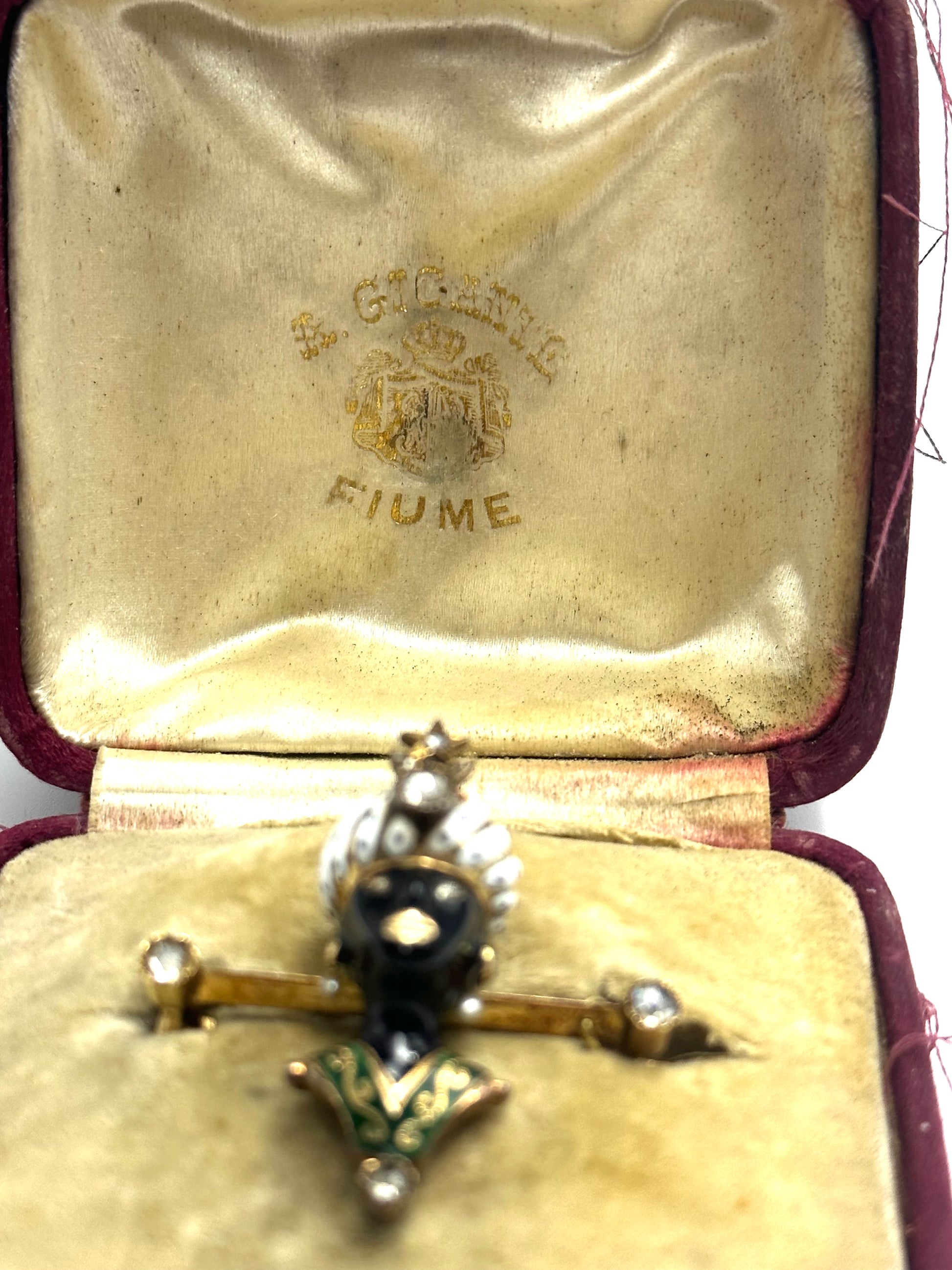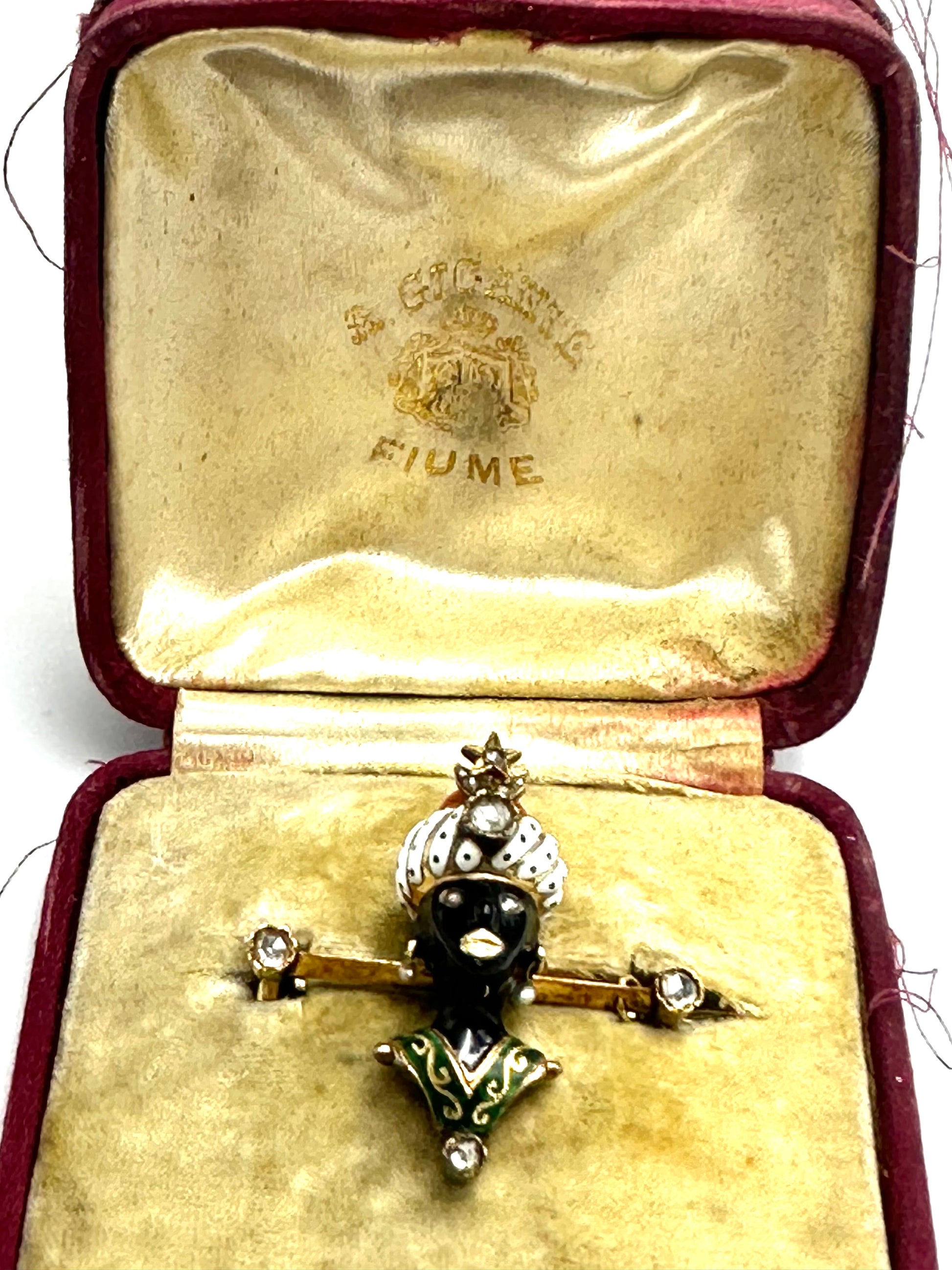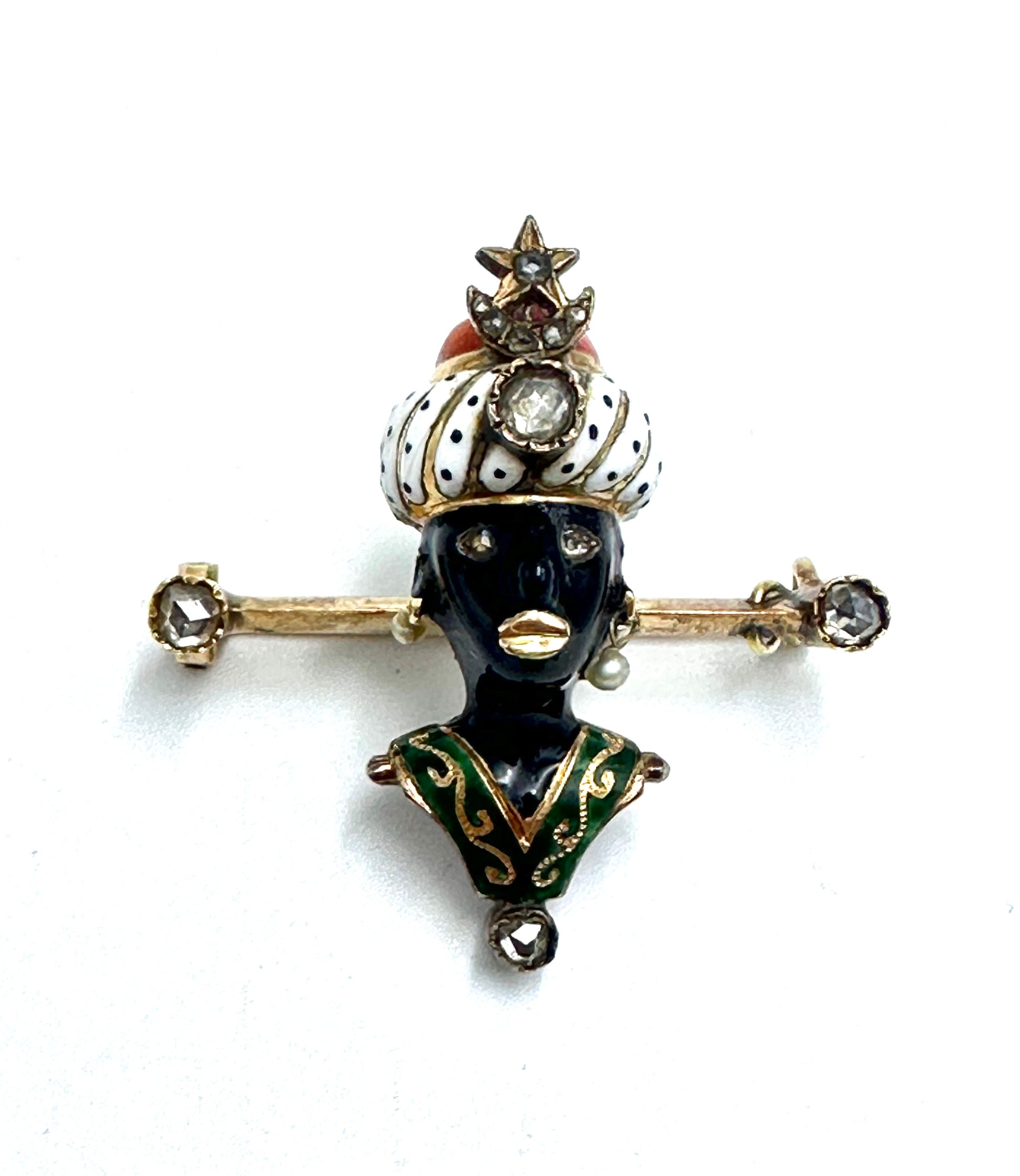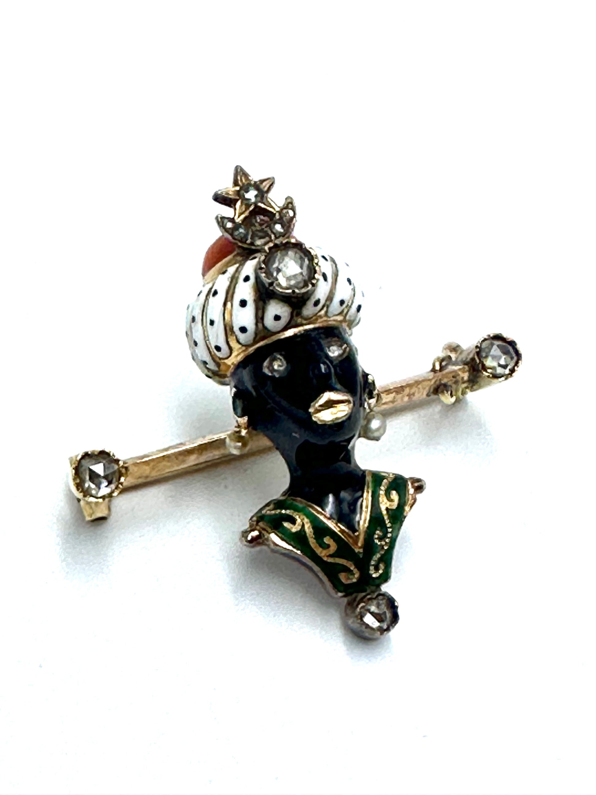 Rare Polychrome Enamels Gold Pin Bar with "Moretto" from the Dalmatian workshop of goldsmith artist A. Gigante.