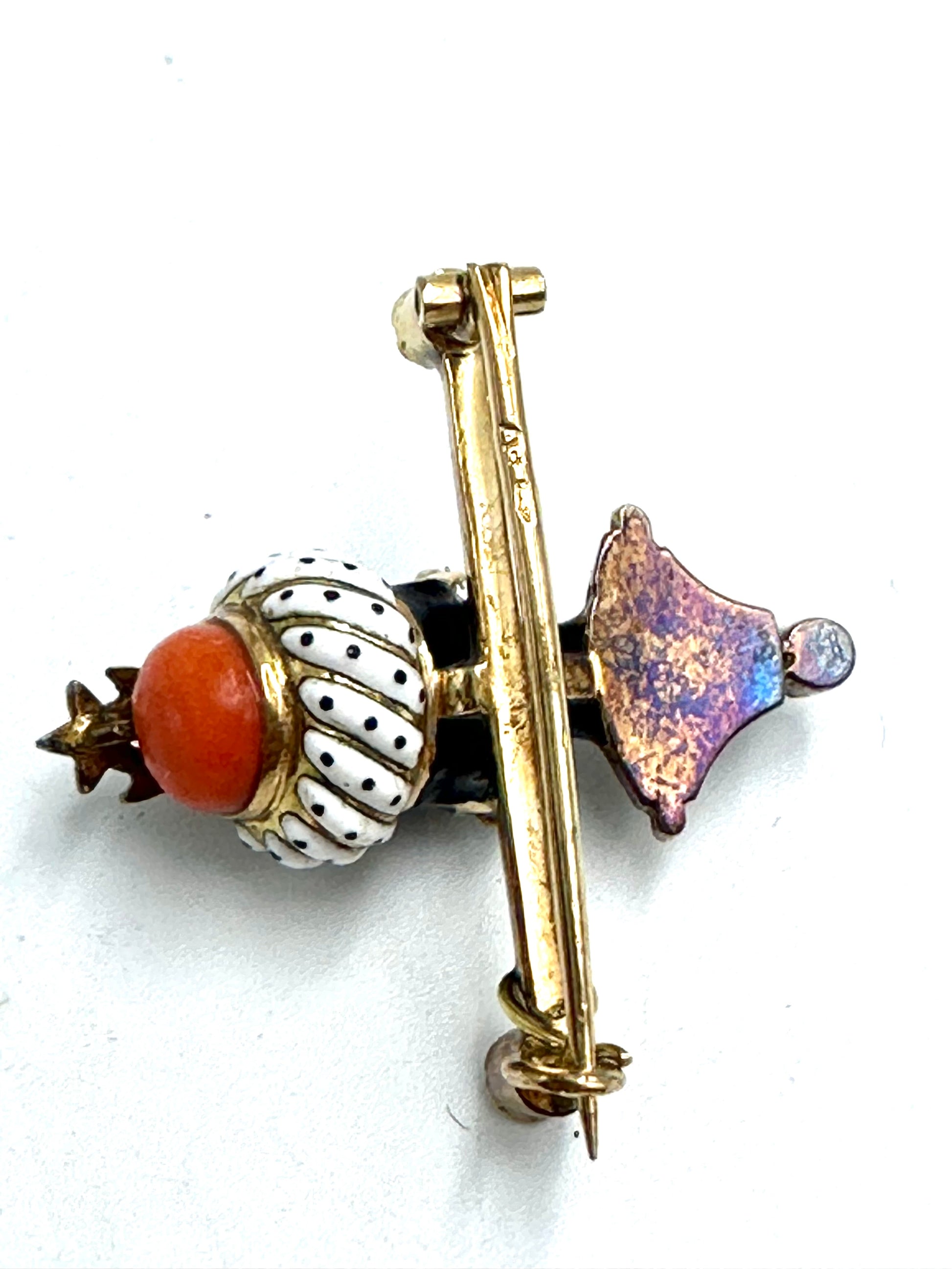 Spilla in oro con smalti policromi con "moretto", firmata Agostino Gigante