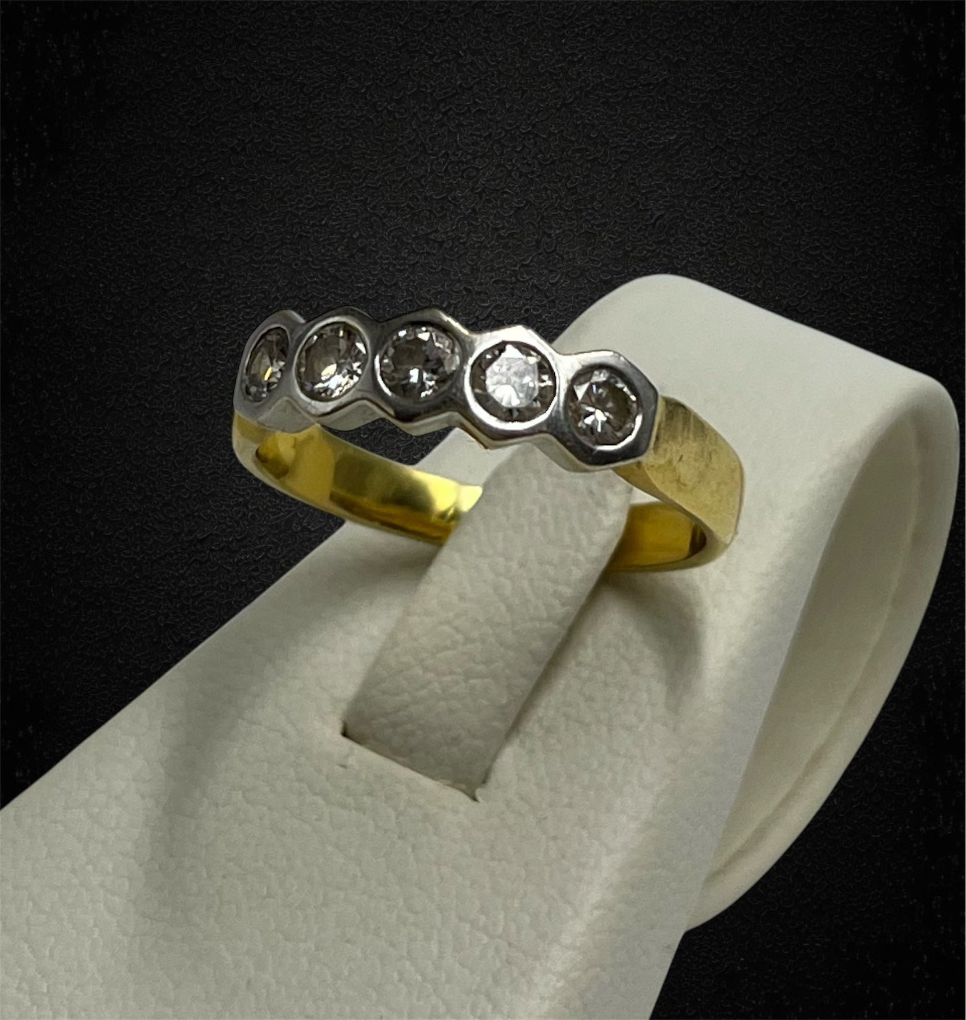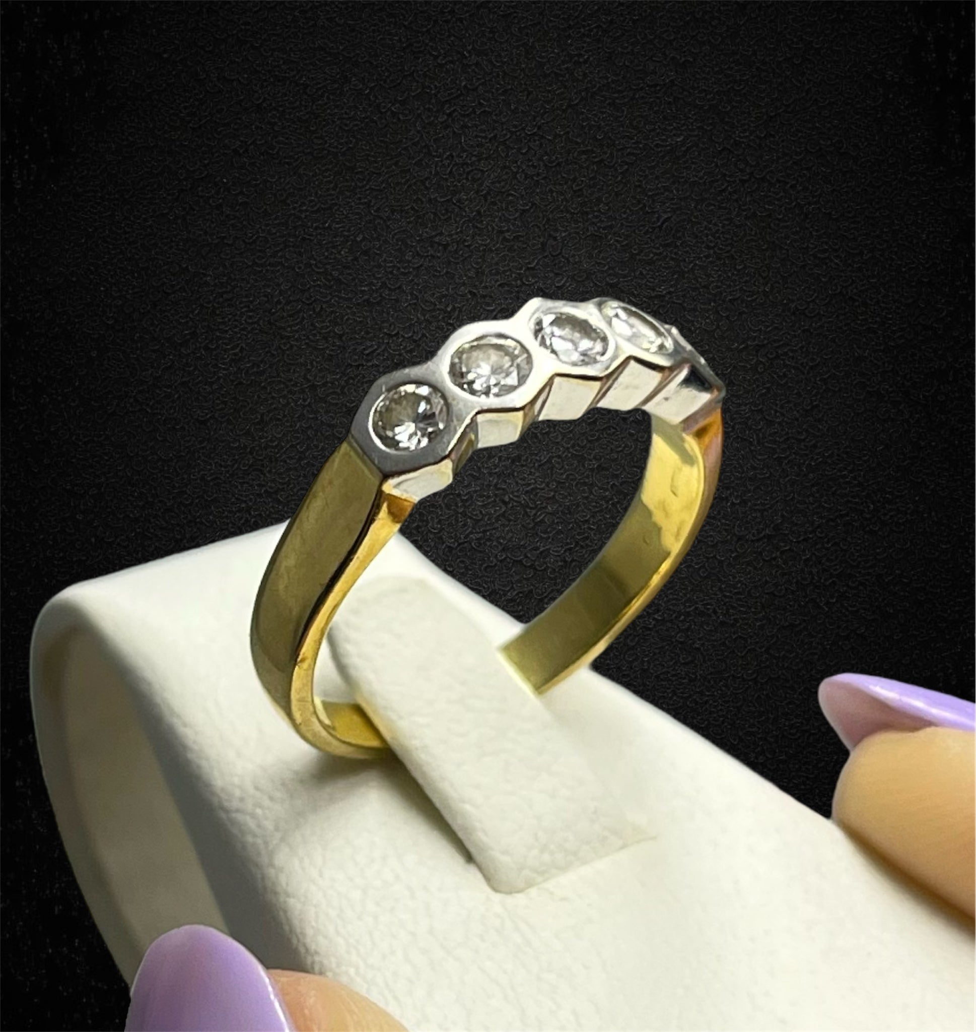 Ogni diamante, di ottimo colore e purezza, ha un peso di 0,10 carati, per un totale di 0,50 carati, donando all’anello una luminosità sofisticata e senza eguali. Il design classico e armonioso lo rende un gioiello perfetto da indossare ogni giorno o per celebrare i momenti più preziosi.