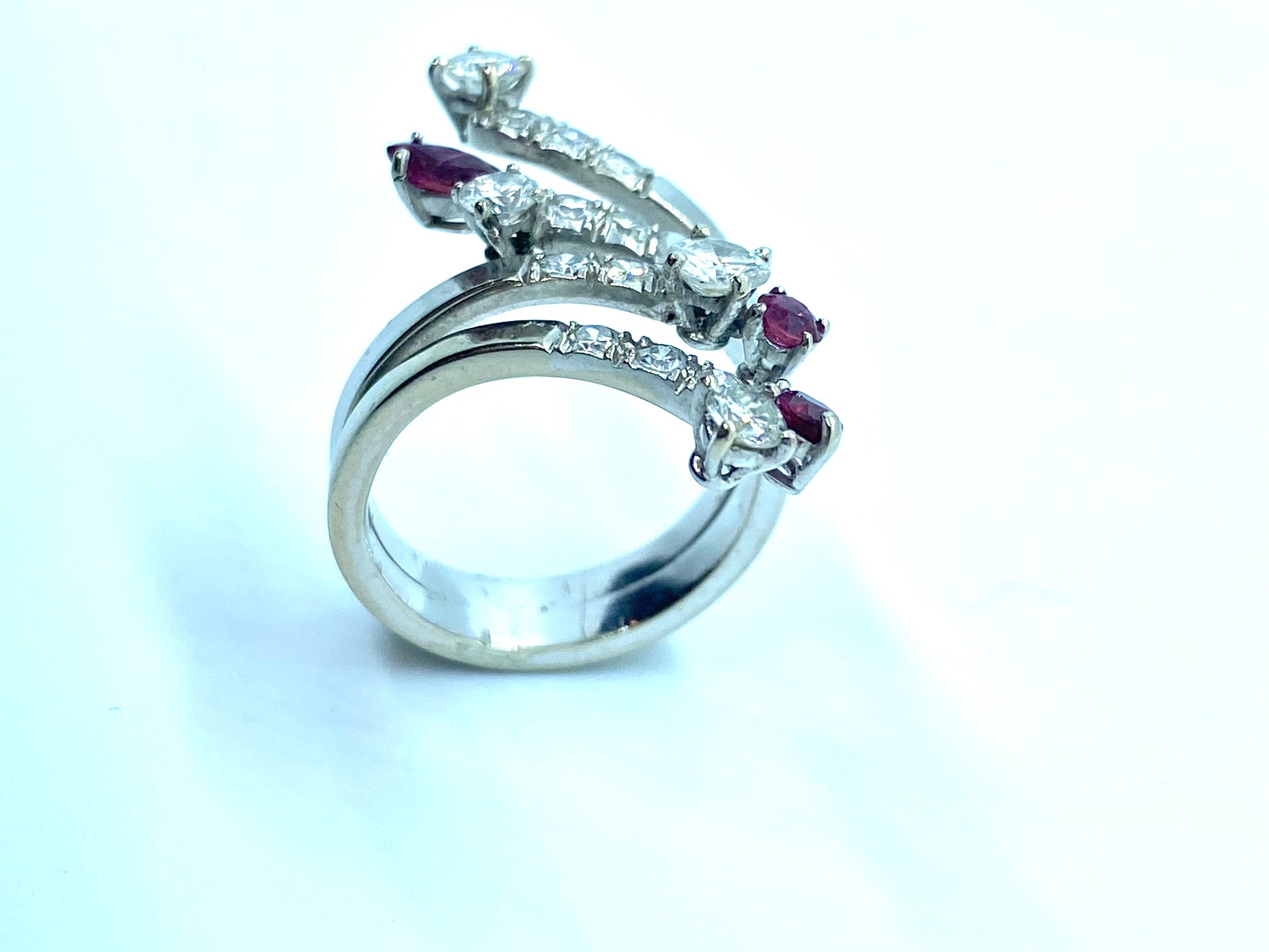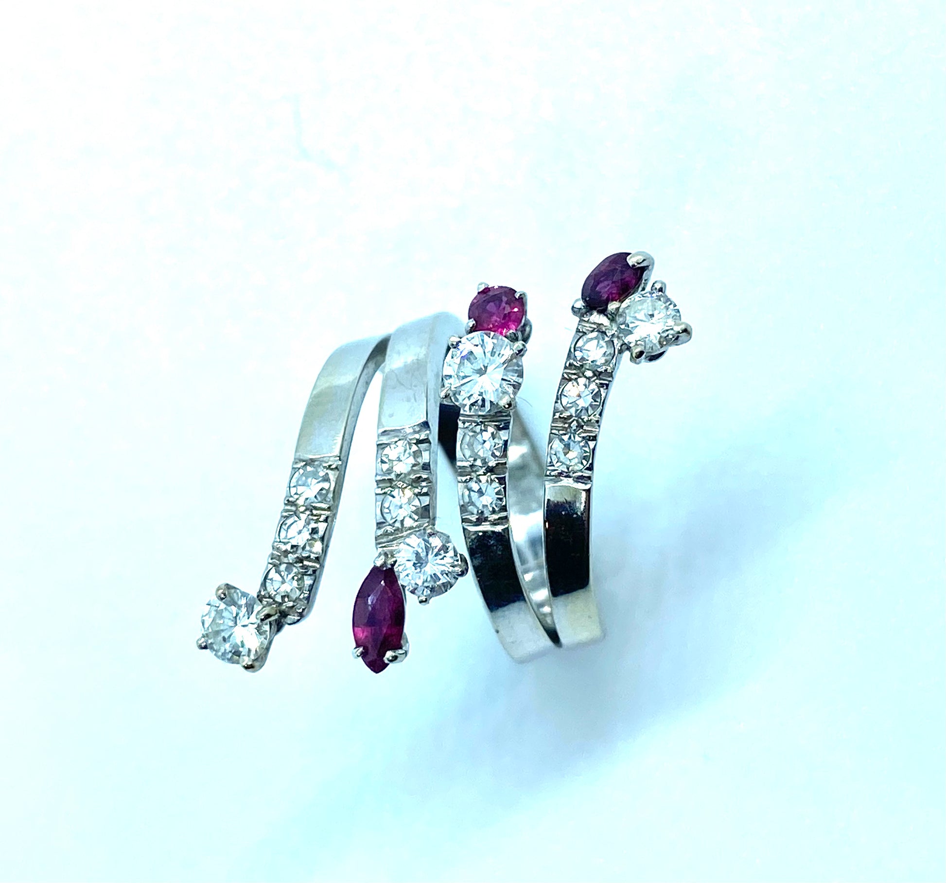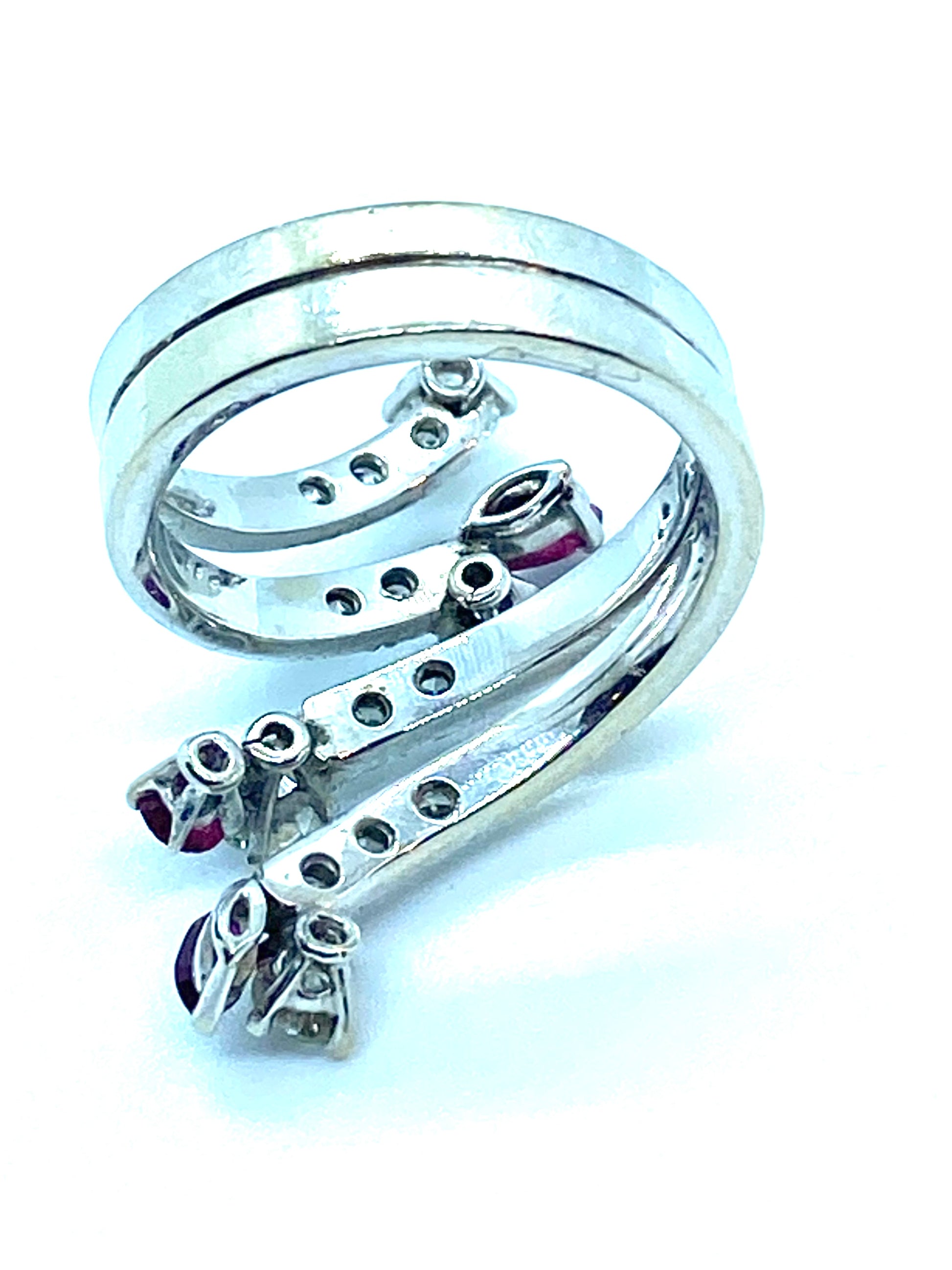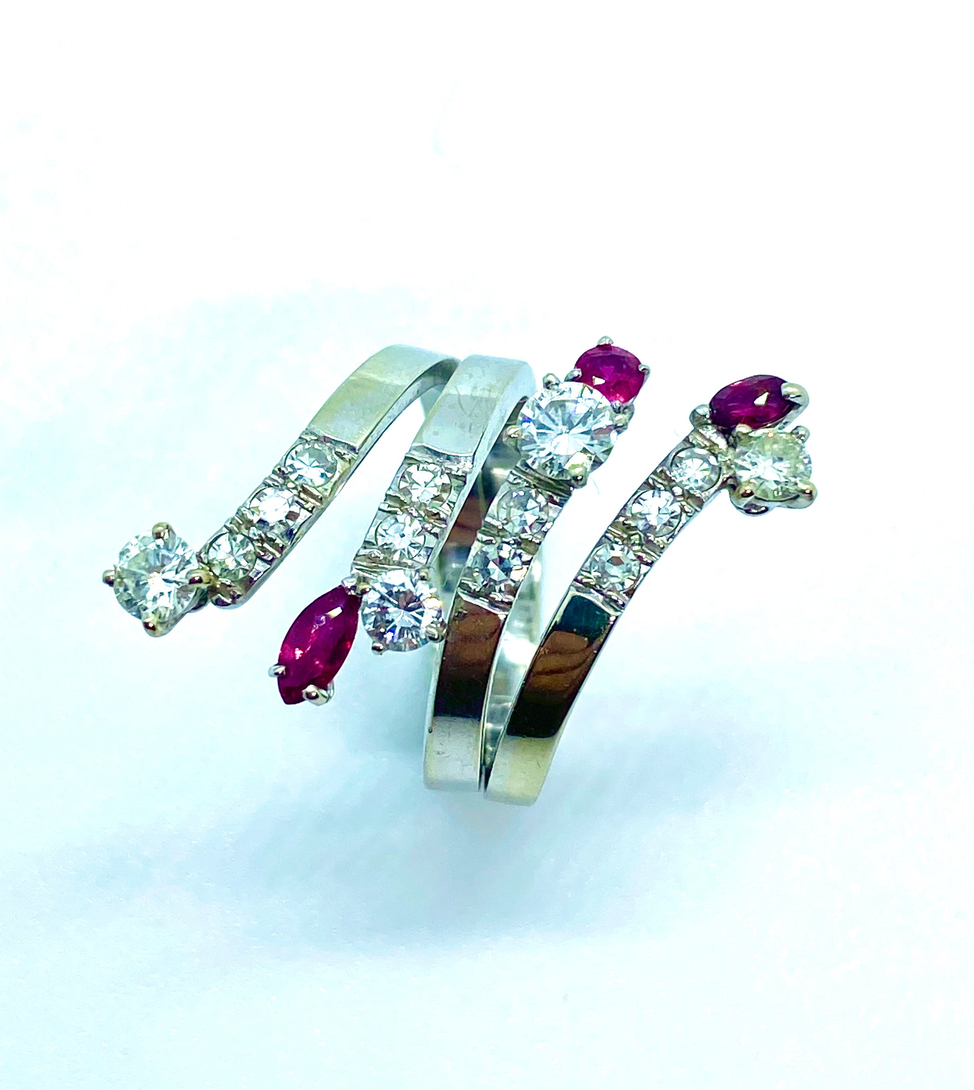 Anello serpente stilizzato, diamanti e rubini