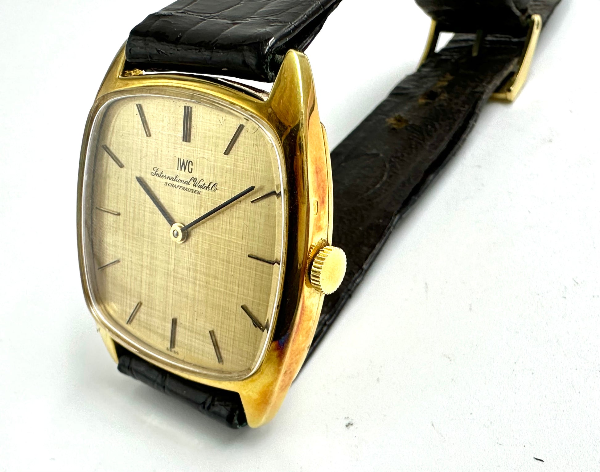 Cassa di forma, in oro giallo 18kt, ref. 2770, cassa 34 x 38 mm. quadrante champagne con indici, calibro 403 - 423, cinturino in pelle con fibbia originale in oro giallo 18Kt, cassa, quadrante e movimento firmati.