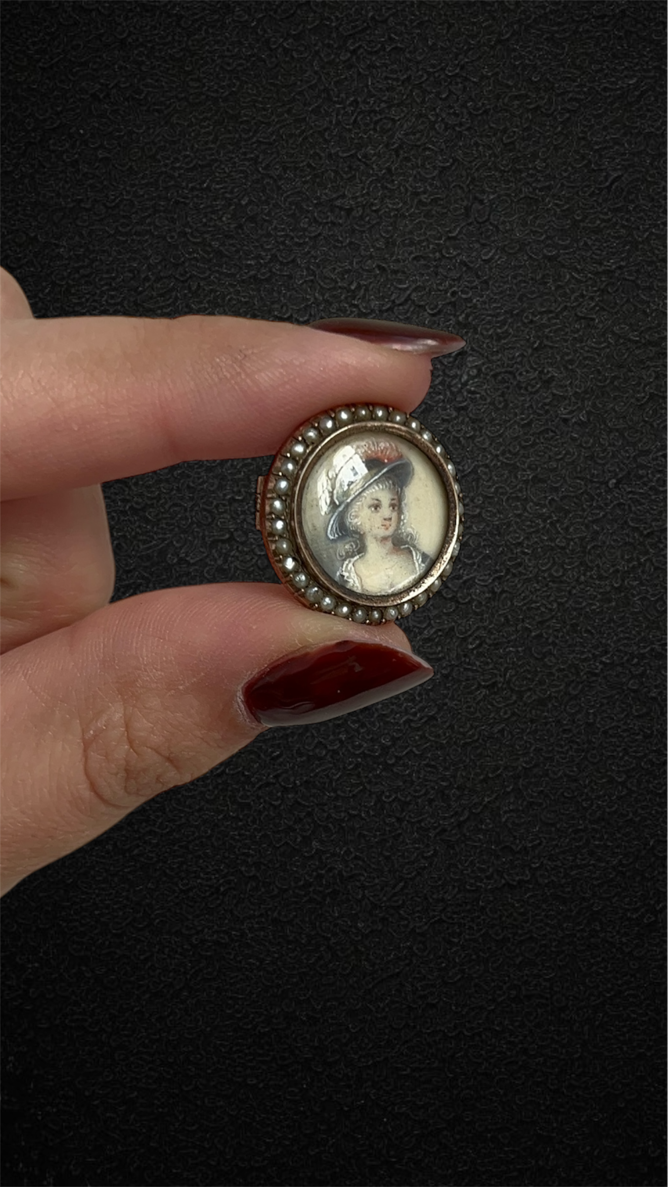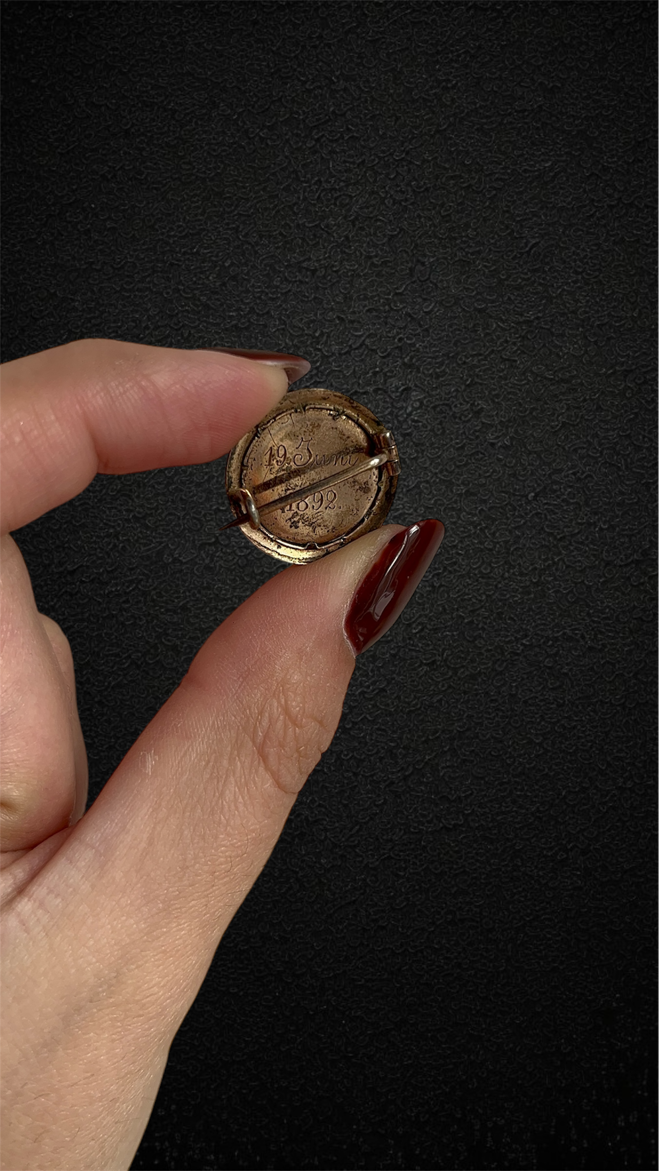 Realizzata nella Germania di fine Ottocento, questa raffinata spilla presenta uno splendido design in miniatura. Ospitata nel suo cofanetto originale e coevo, realizzato dal noto gioielliere Prikulander di Berlino, questa spilla è davvero un gioiello. Sul retro è impressa la sincera dedica "Emmy - June 19, 1892", che aggiunge un tocco personale. Realizzata in oro e argento, questa spilla trasuda eleganza e fascino. Perfetto per aggiungere un tocco di raffinatezza vintage a qualsiasi outfit.