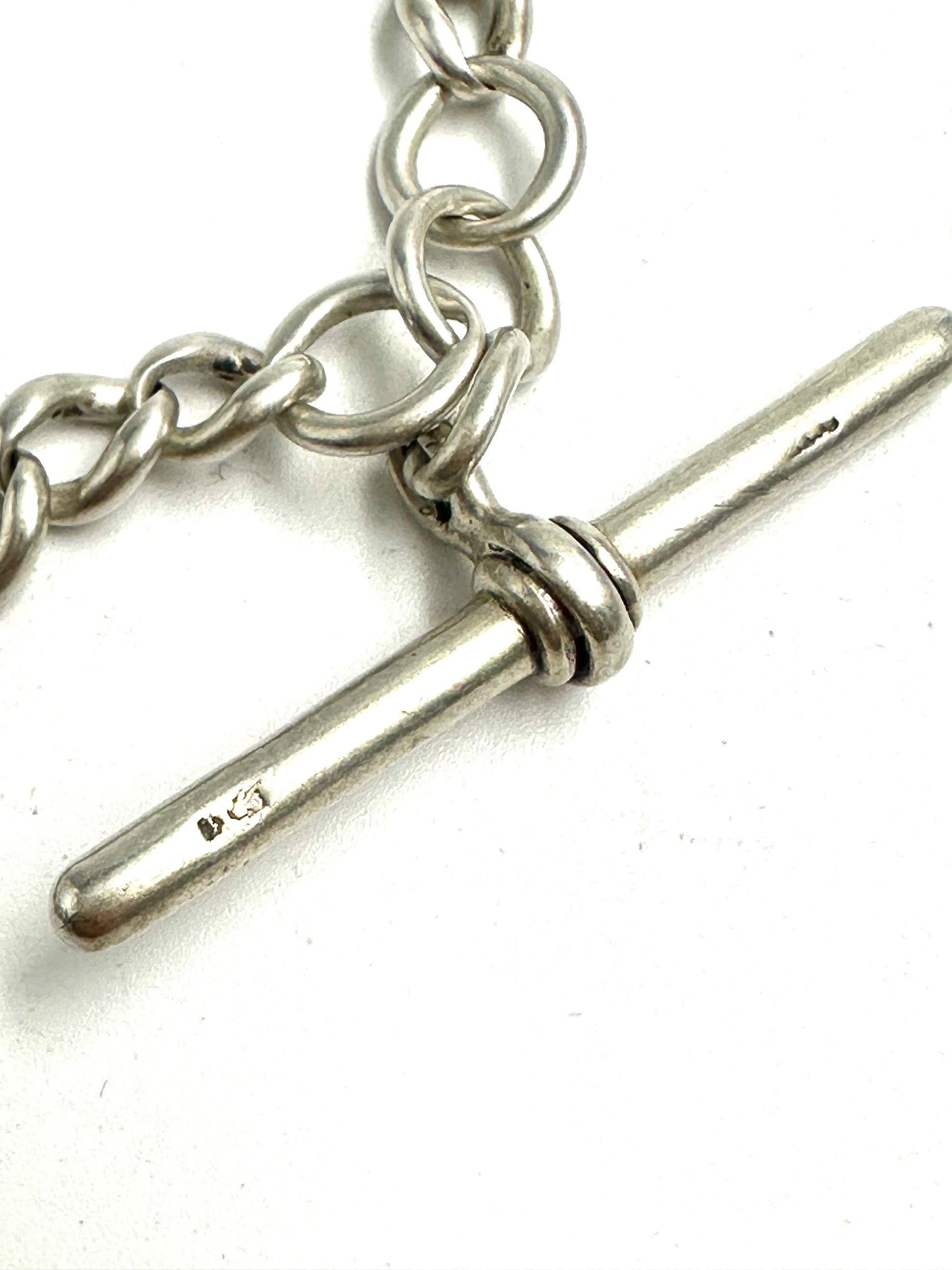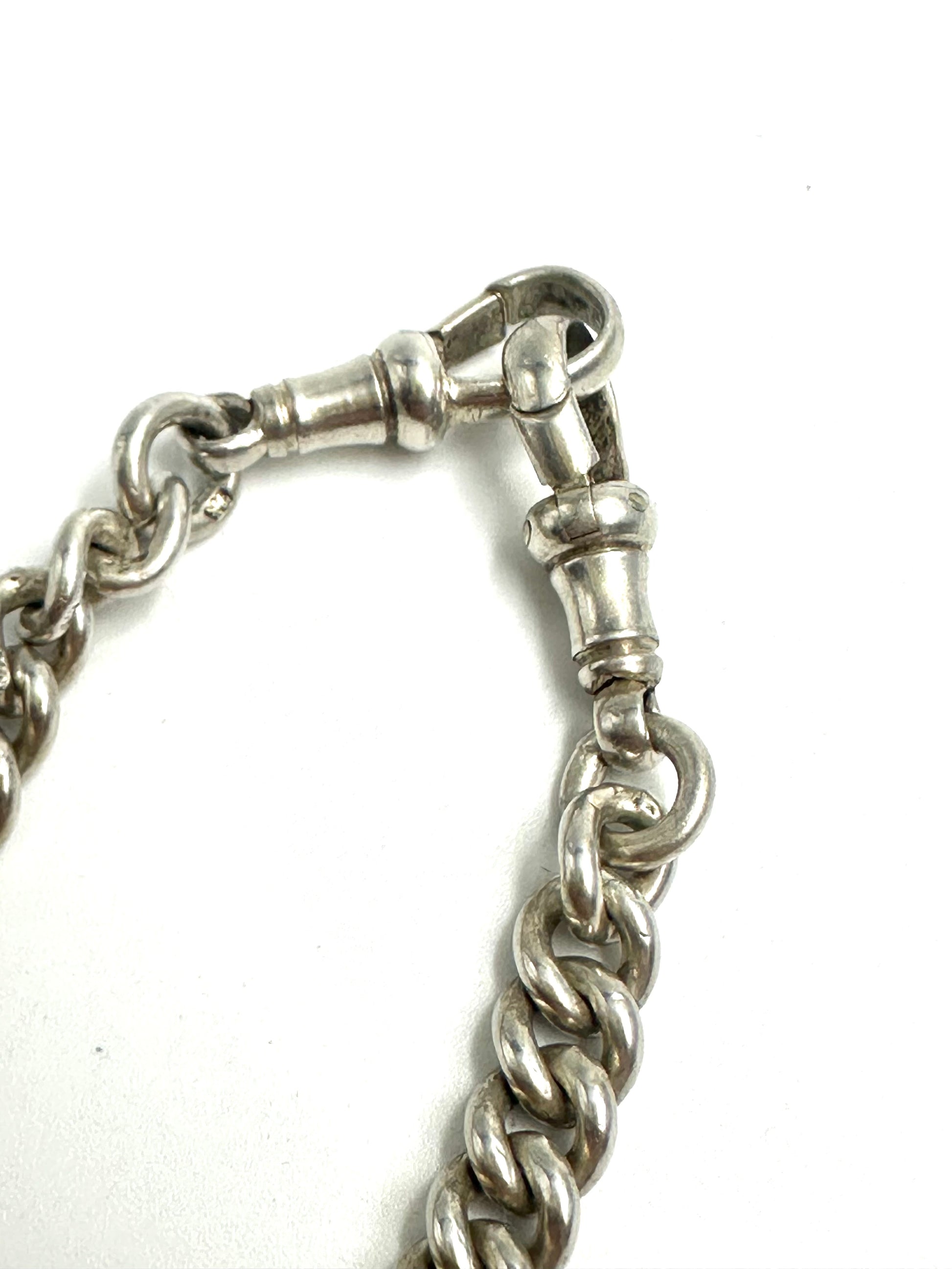 Con una lunghezza di 40 cm, la catena è progettata per offrire un perfetto equilibrio tra comfort e funzionalità. Il suo fascino storico è ulteriormente valorizzato dai punzoni di Birmingham risalenti al 1907, testimoni della maestria artigianale di James Walter Tiptaf & Sons, un nome di prestigio attivo dal 1888 al 1942.