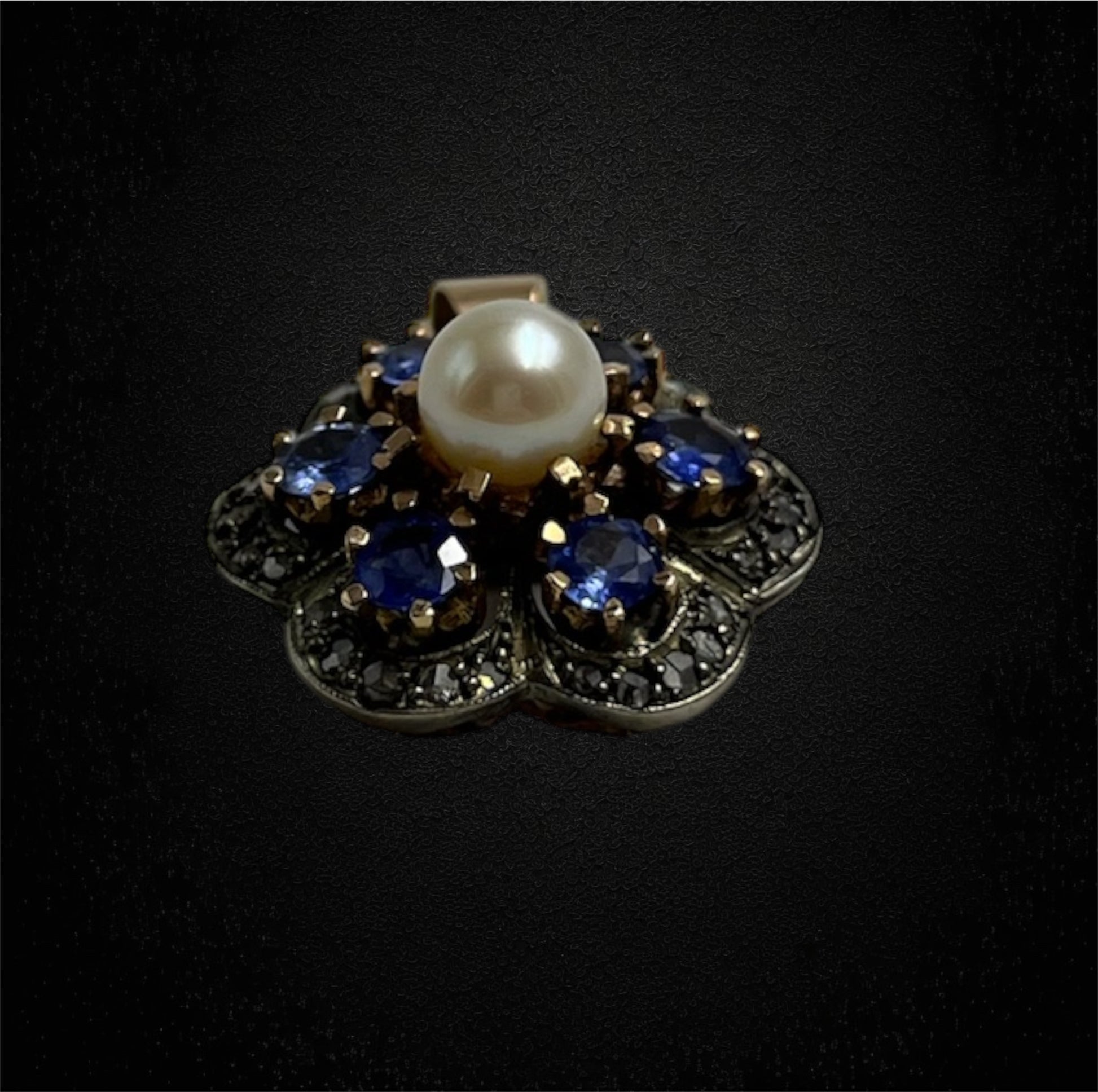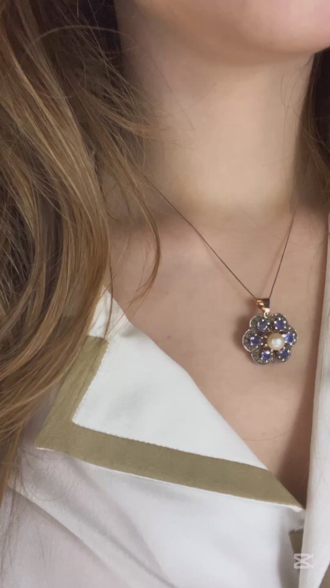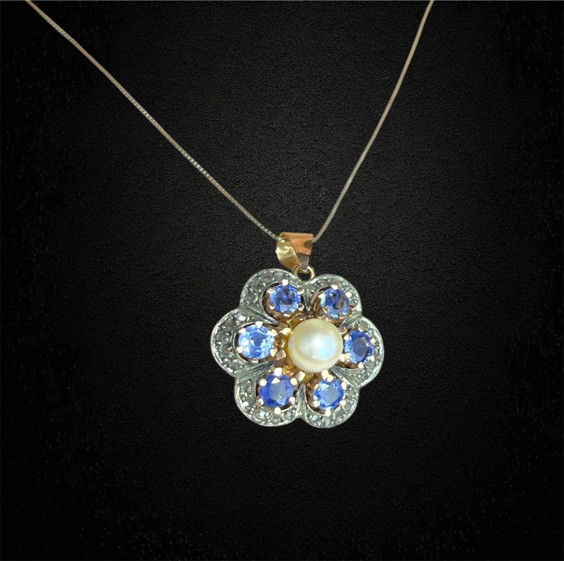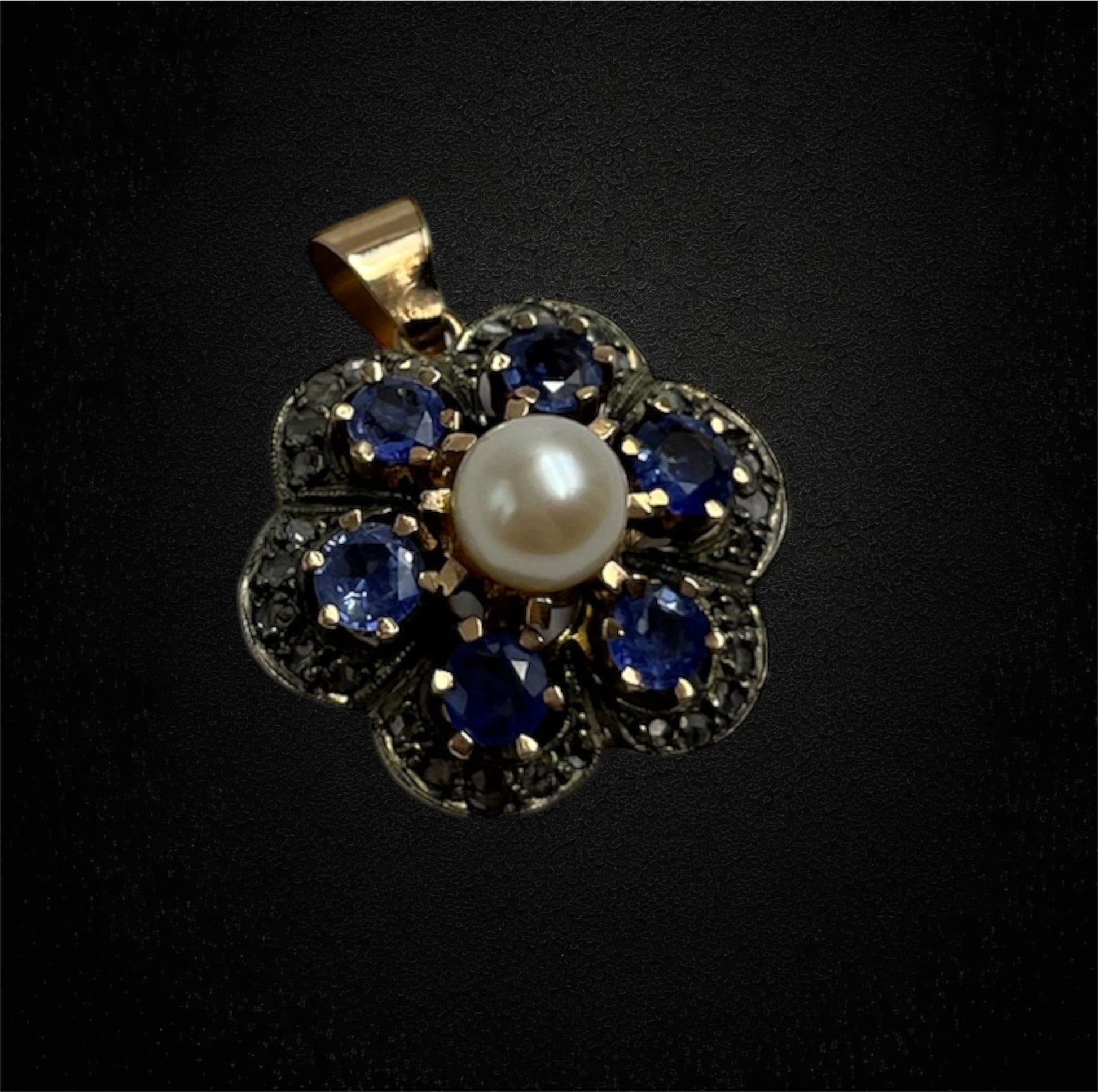 Ciondolo ispirato allo stile ottocentesco, zaffiri, perla e diamanti