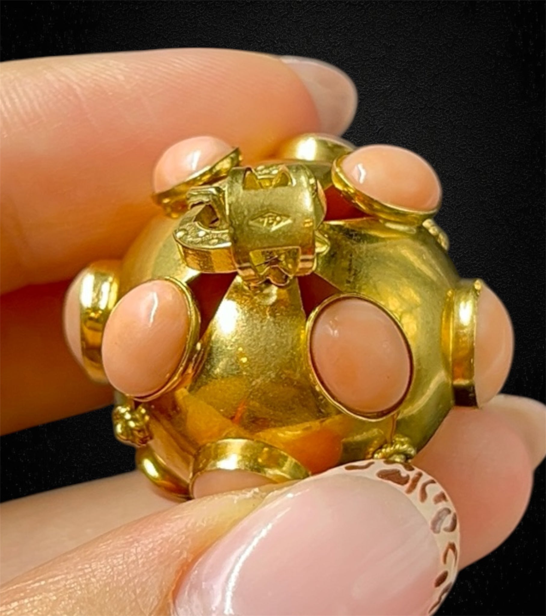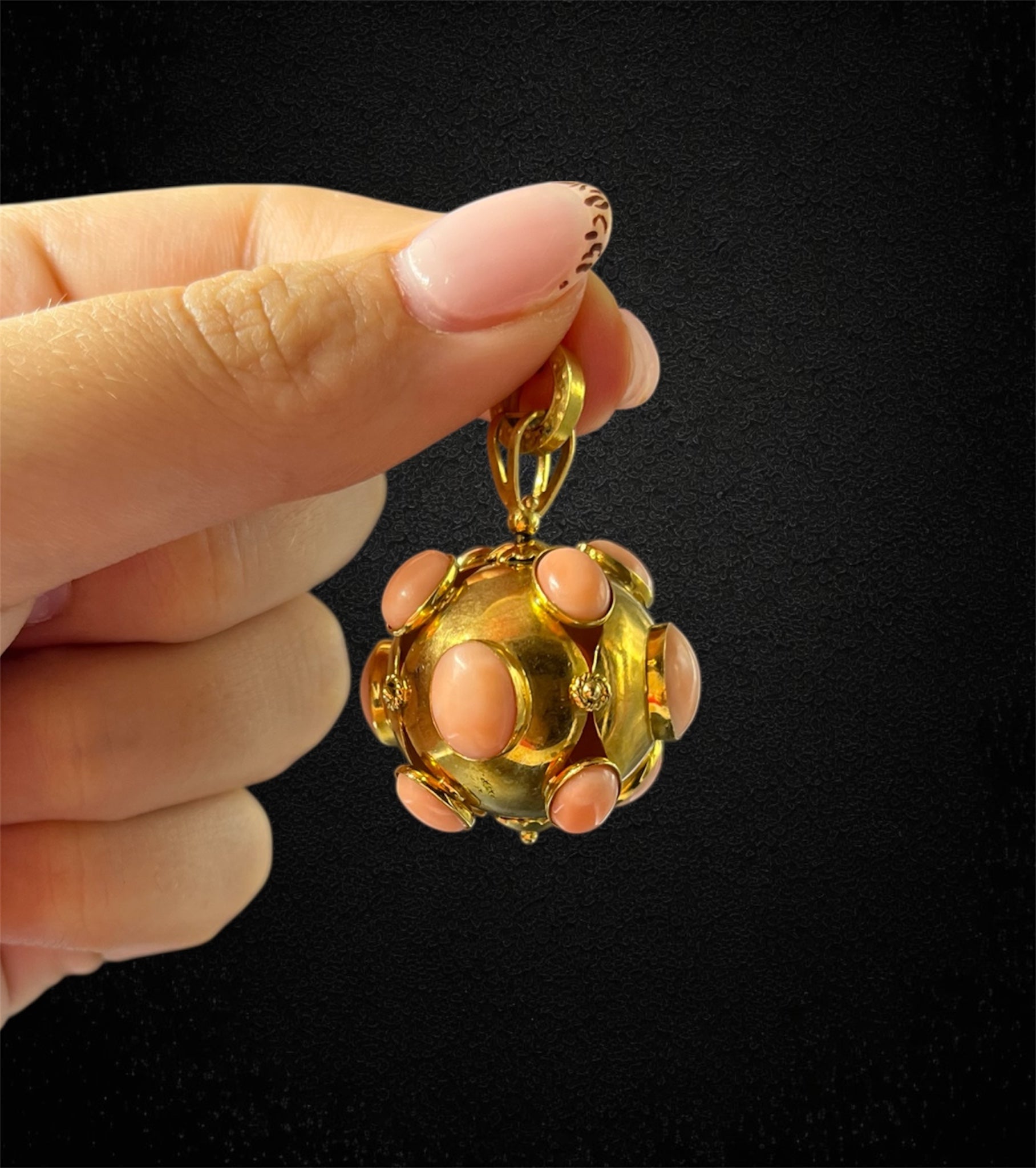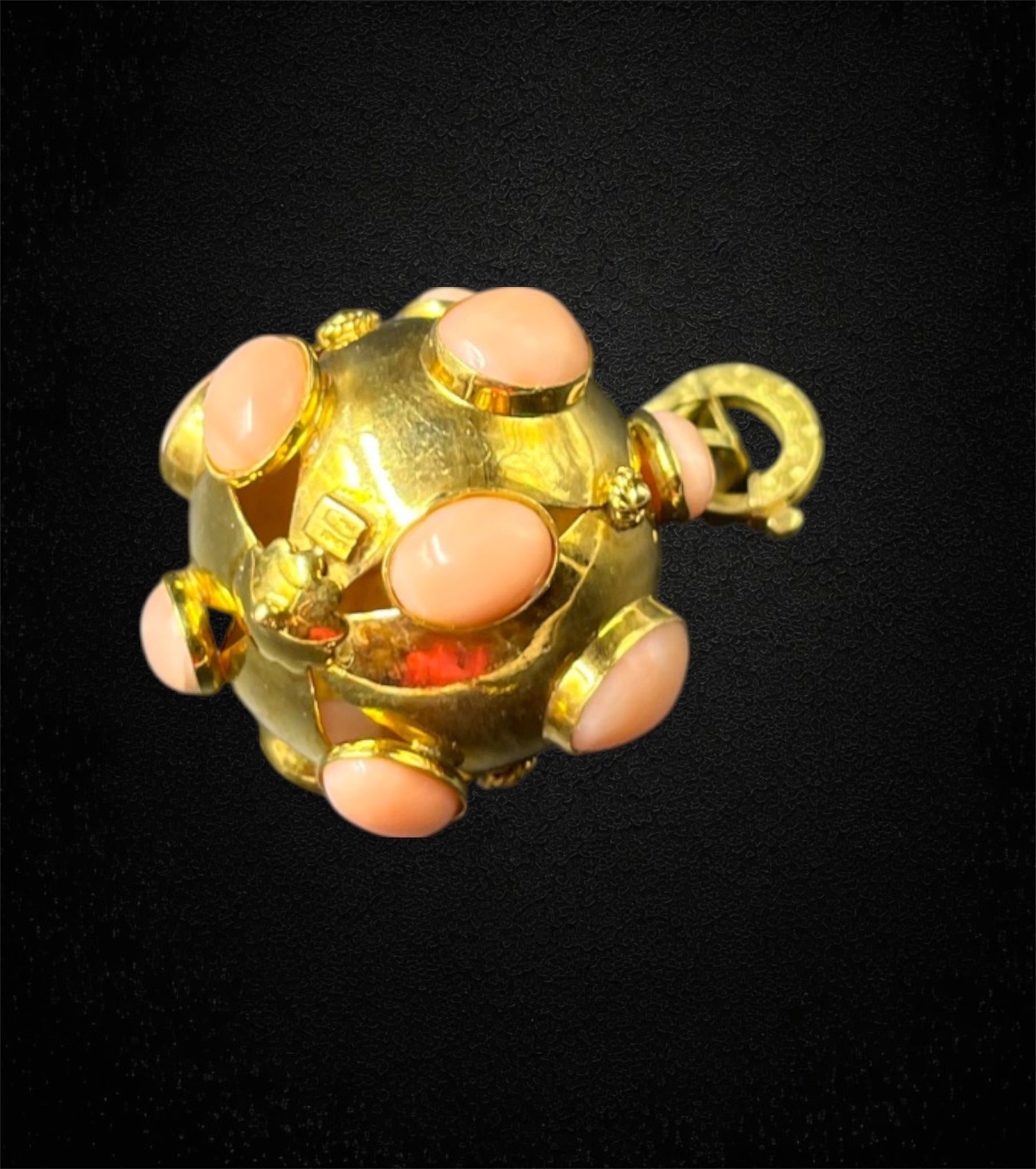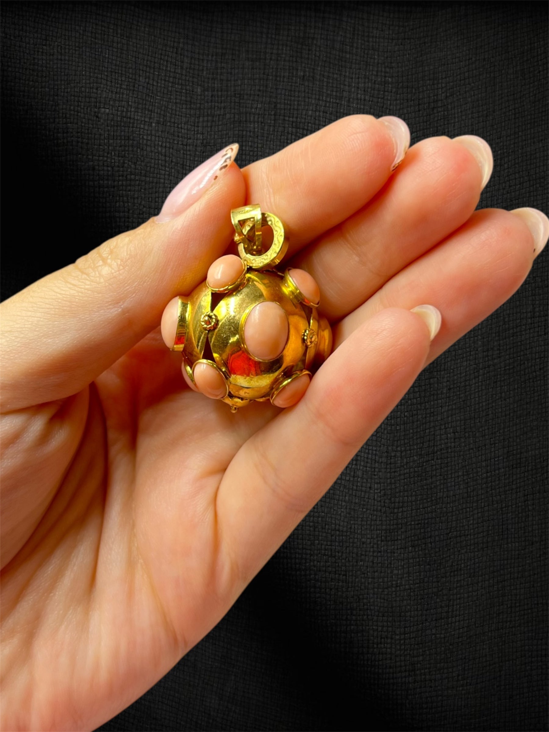Ciondolo “mina” in oro giallo 18K con inserti in corallo rosa — Italia, anni ’60 (Copia)