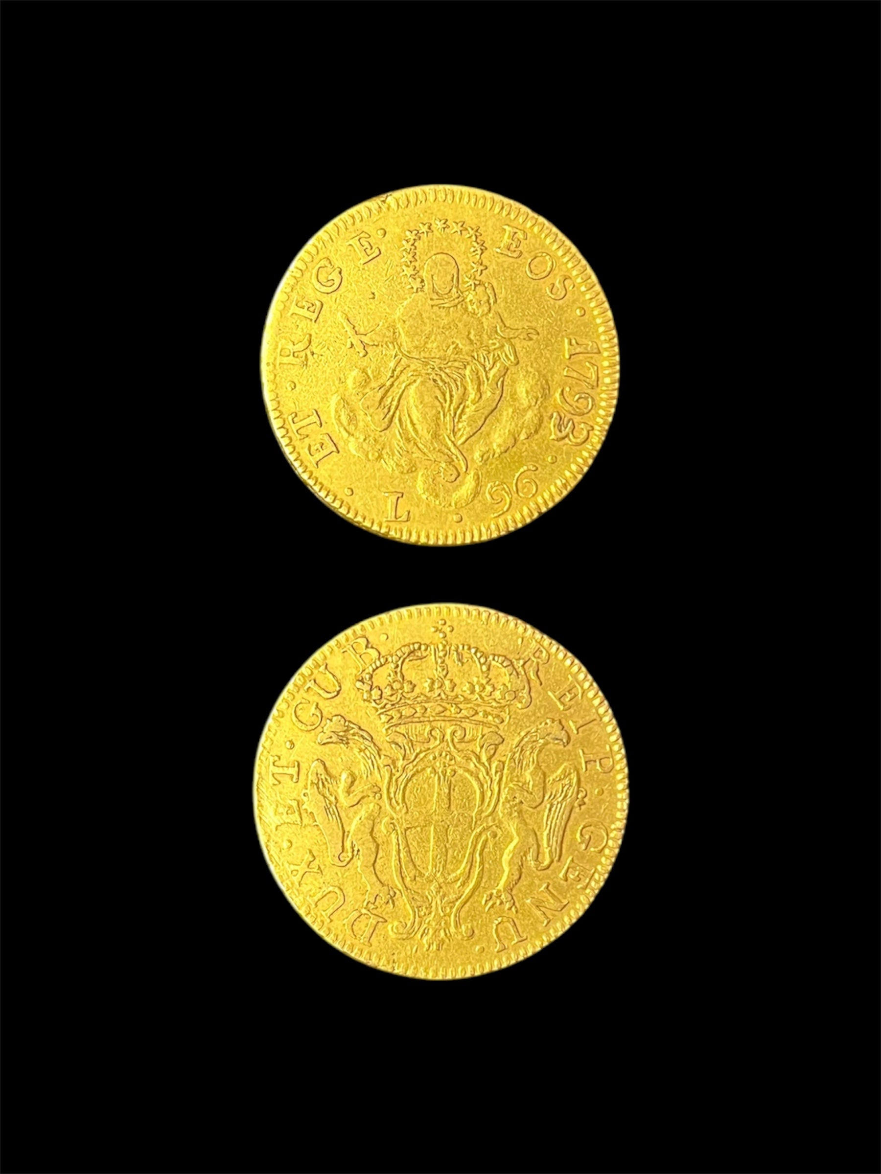 Nel 1792, venne ritirata la serie monetaria con i decimali (12,5, 25, 50 e 100 lire), coniata fino al 1767, per fare spazio a una nuova serie basata sul multiplo dello scudo da 4 lire. Con questa riforma, vennero introdotti i nuovi multipli da 96 lire e le frazioni da 48, 24 e 12 lire. Le monete datate 1792 recano lo stemma "vecchio", un scudo ornato in stile barocco, definito "vecchio conio", con un diametro di 34 mm. Le monete datate 1793, invece, possono essere coniate con lo stemma vecchio o con lo stemma "nuovo", uno scudo squadrato, noto come "nuovo conio", con un diametro leggermente inferiore, pari a 33 mm. A partire dal 1794, tutte le monete furono battute esclusivamente con lo stemma nuovo.