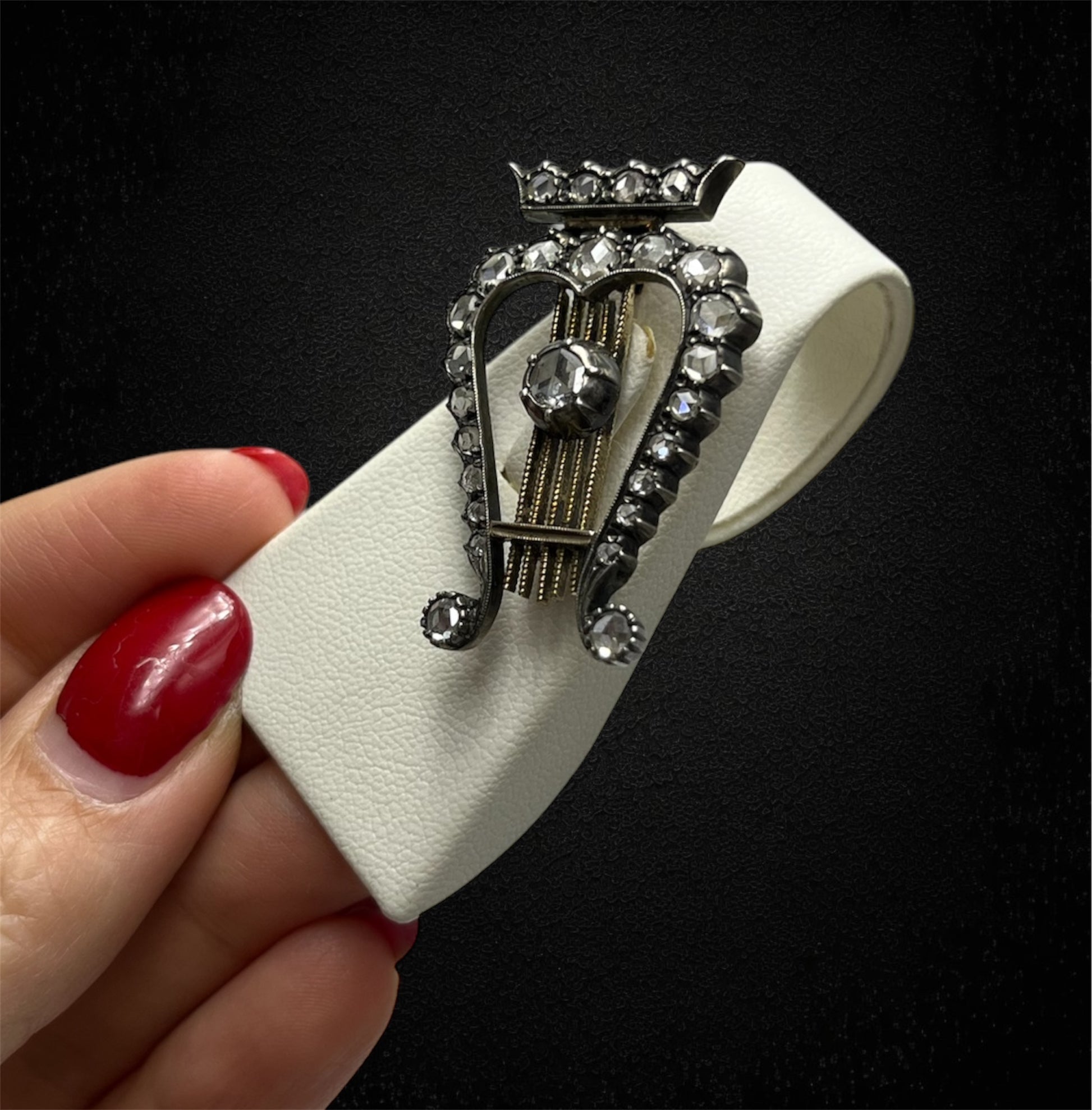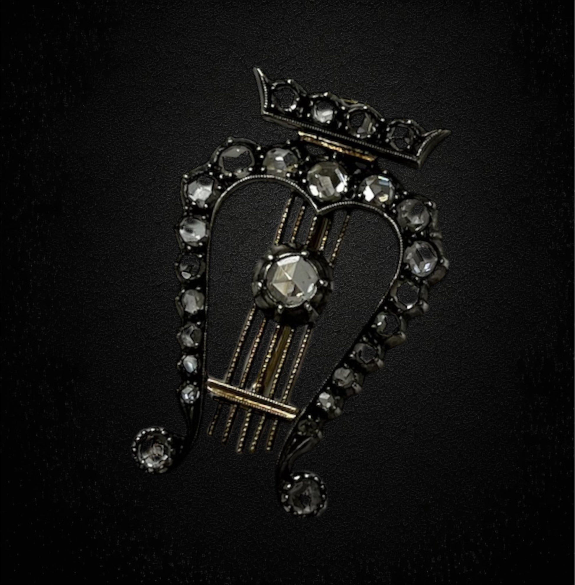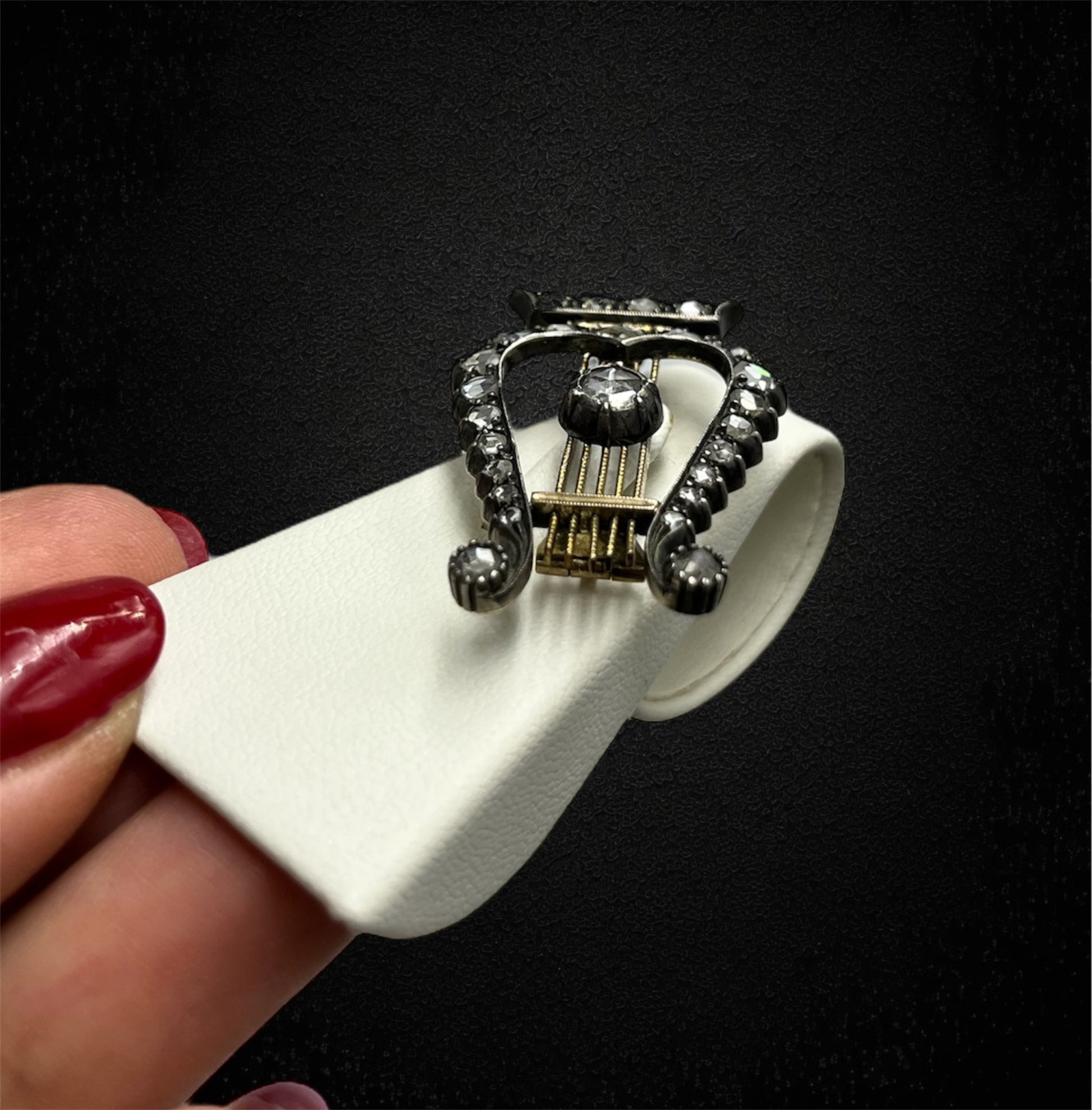 Progettato in una graziosa forma di arpa, questo manufatto non è solo un gioiello; è un emblema senza tempo dell'eleganza vintage.