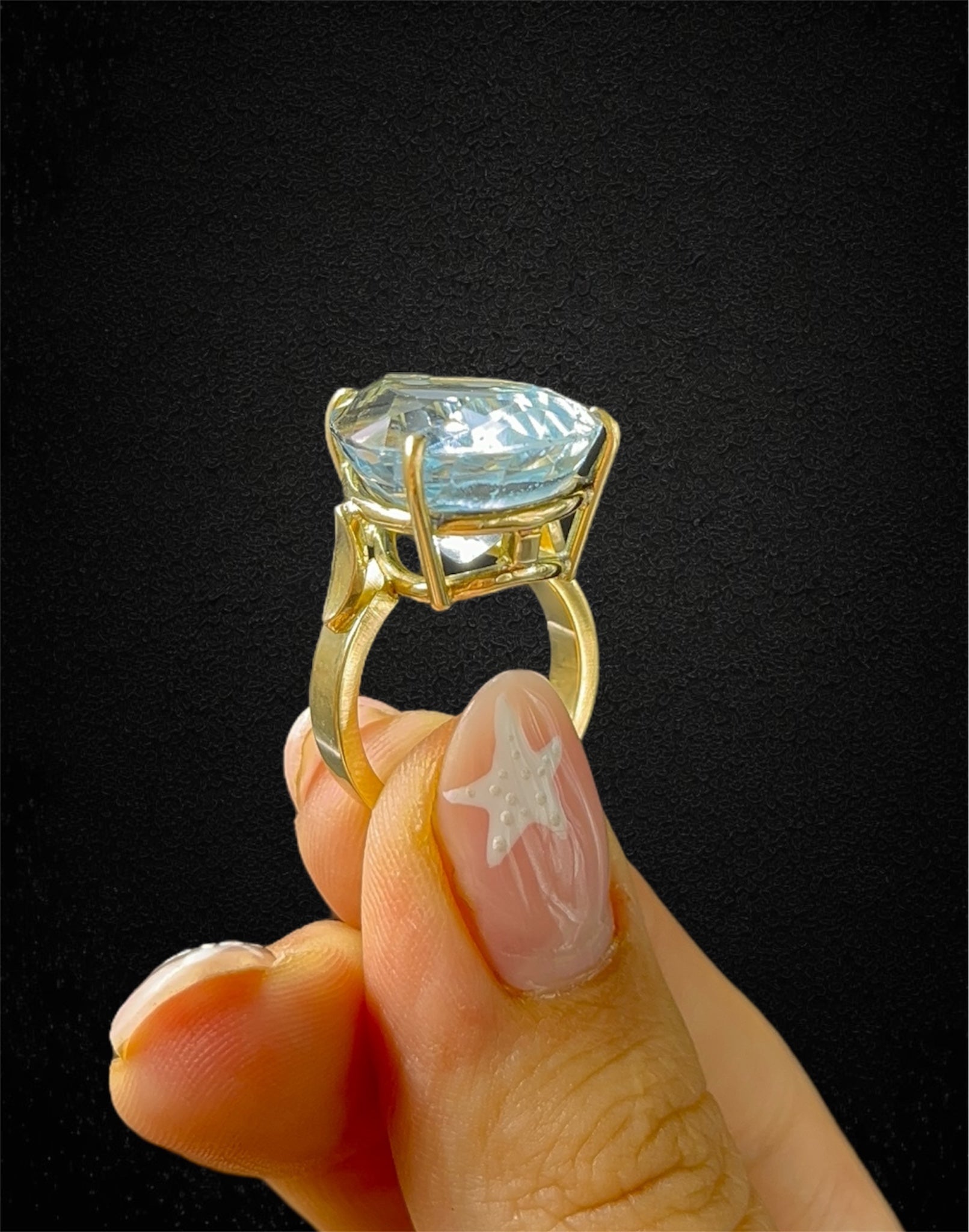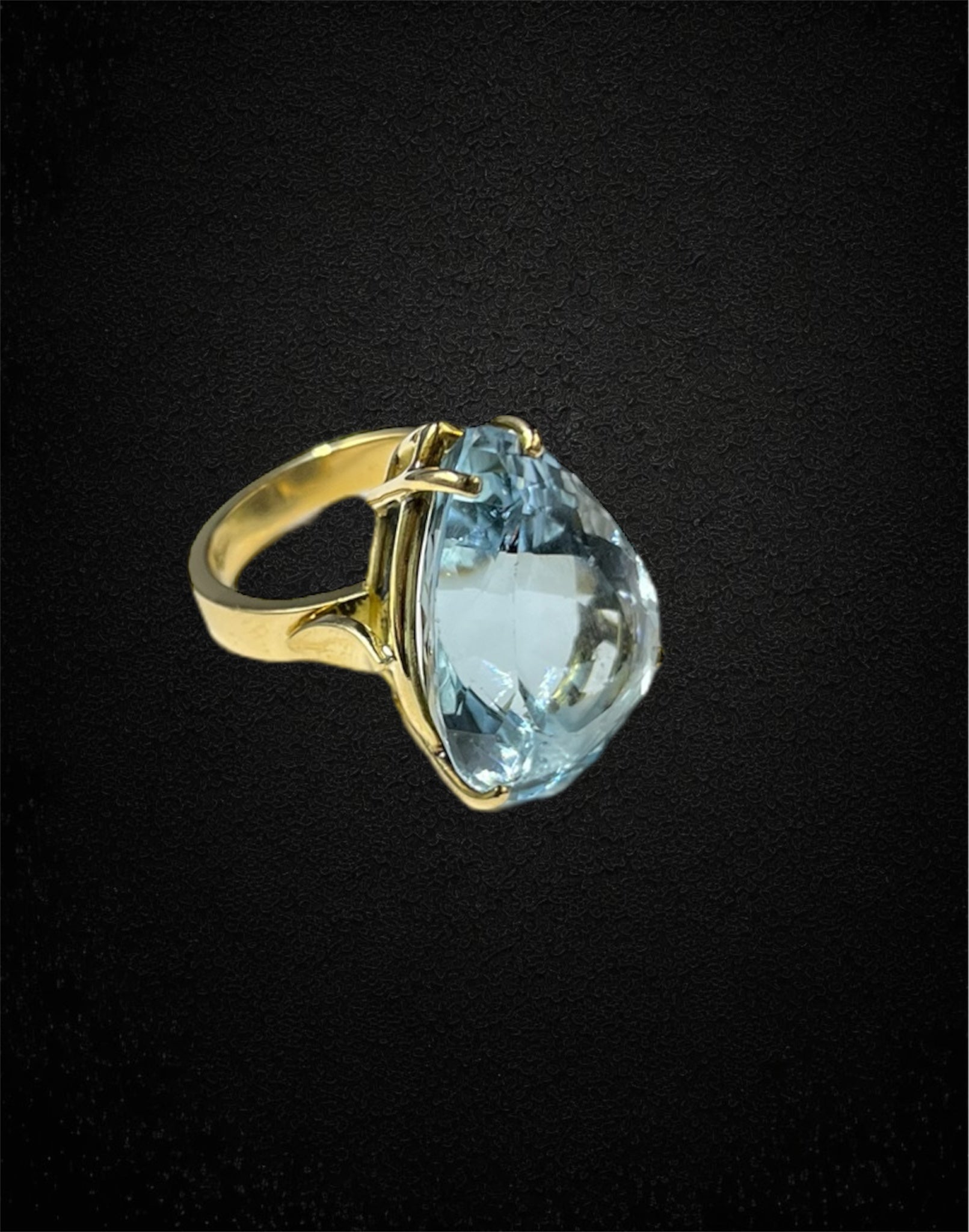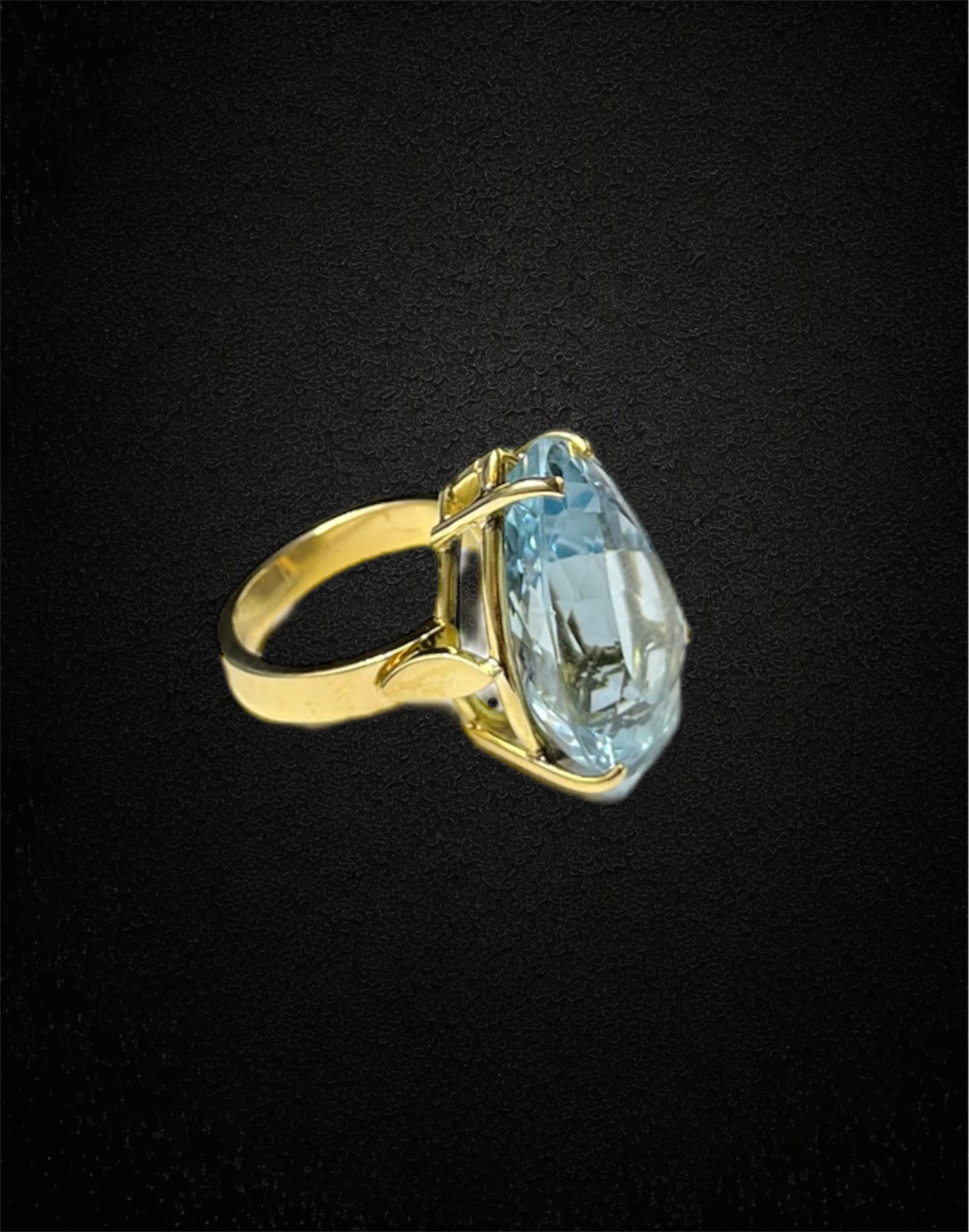 Anello artigianale in oro giallo 18K con topazio azzurro – produzione italiana moderna