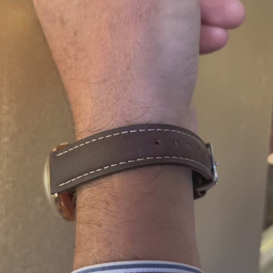 Questo straordinario Longines della fine degli anni Cinquanta è un omaggio all'equilibrio perfetto tra estetica e ingegneria svizzera. La sua cassa in oro 18 carati, dal diametro di 35 mm, cattura la luce con una calda brillantezza, mentre il quadrante argenteé microrighettato riflette la raffinatezza di un'epoca in cui nulla era lasciato al caso.