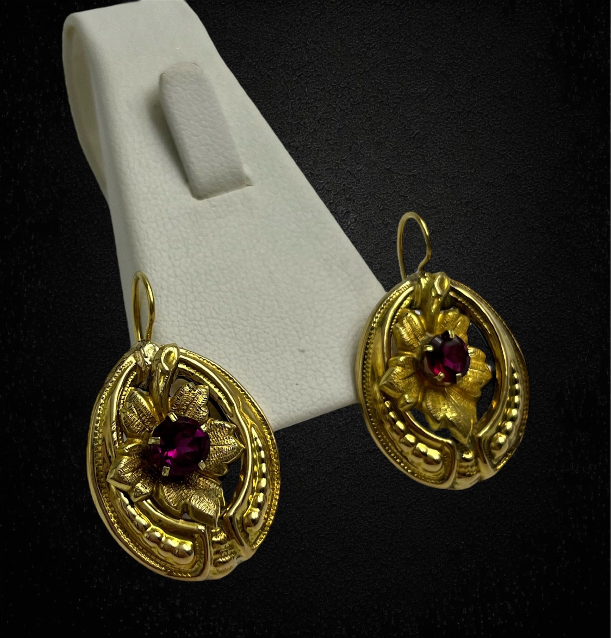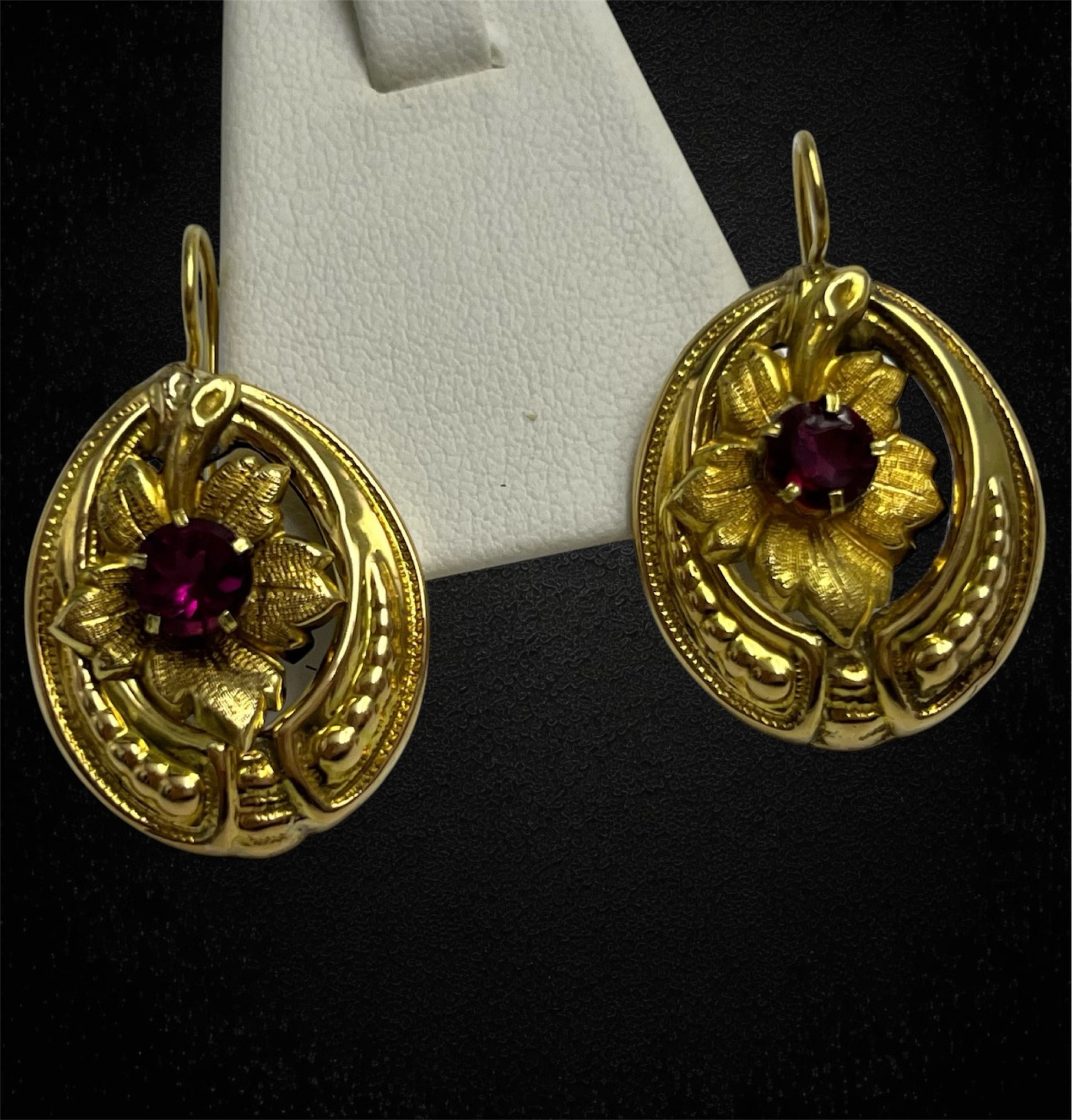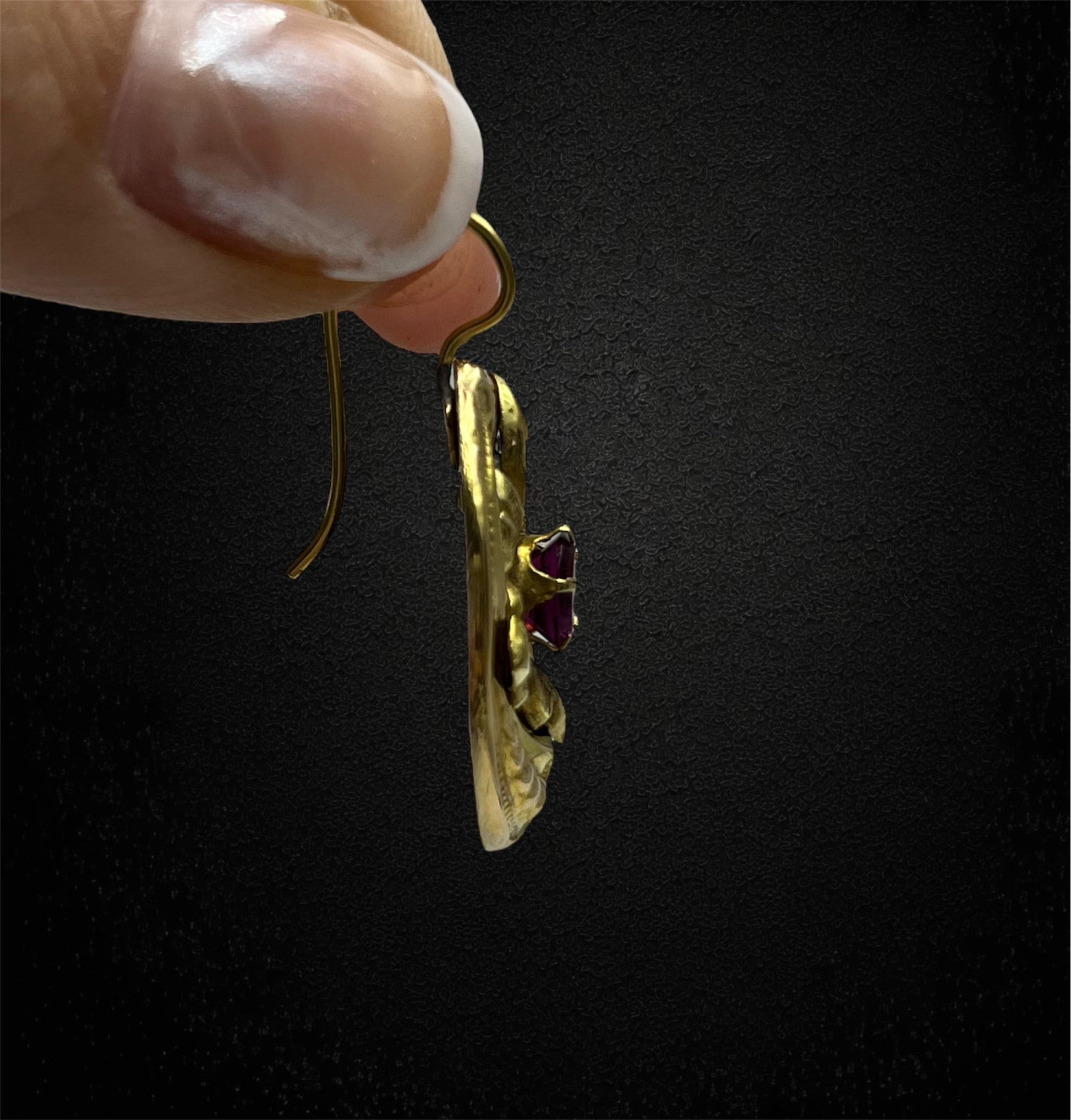 Orecchini in foglia con granati, austroungarici