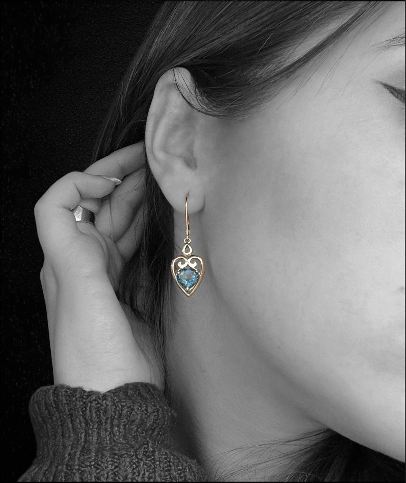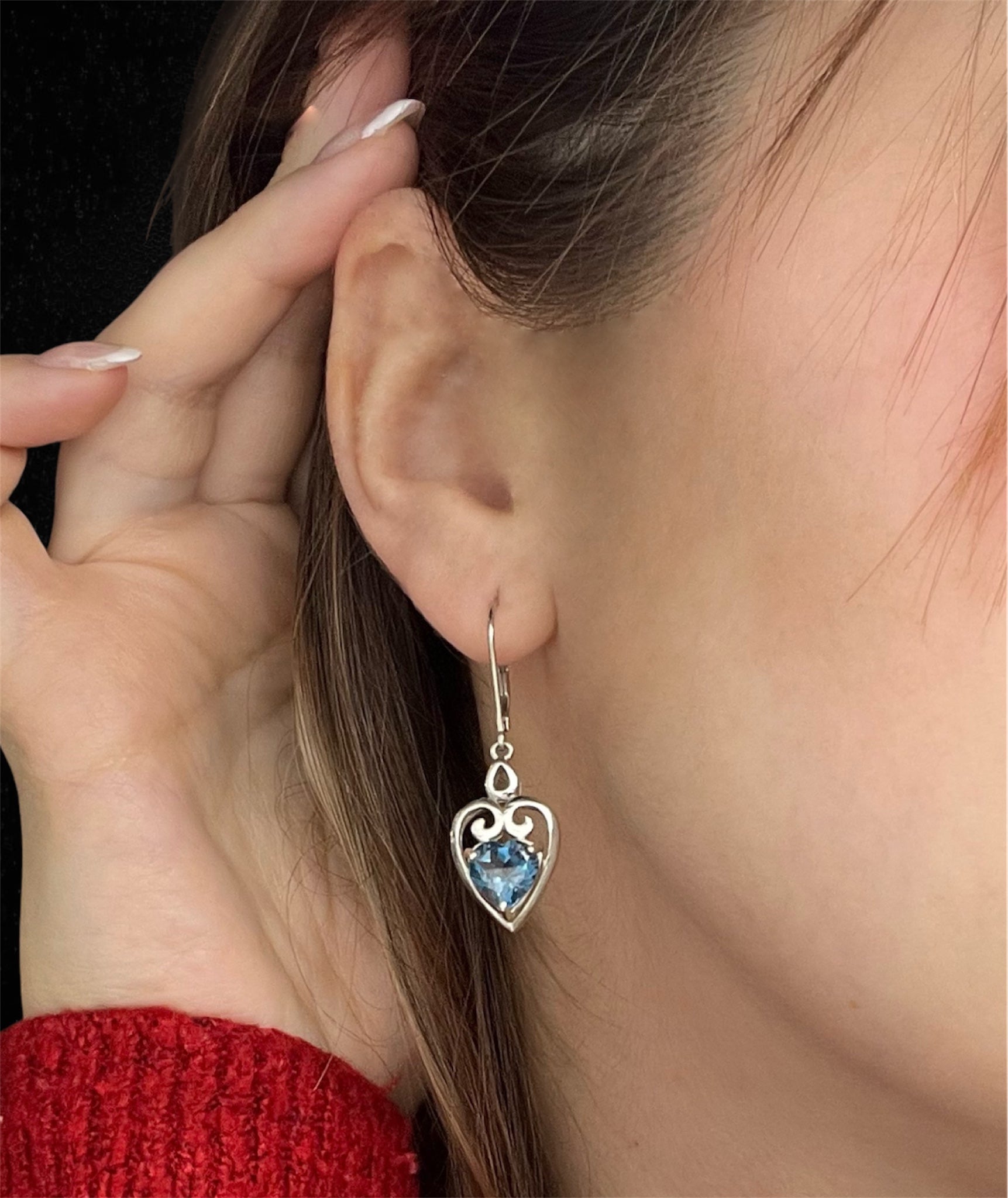 Orecchini pendenti con cuori azzurri
