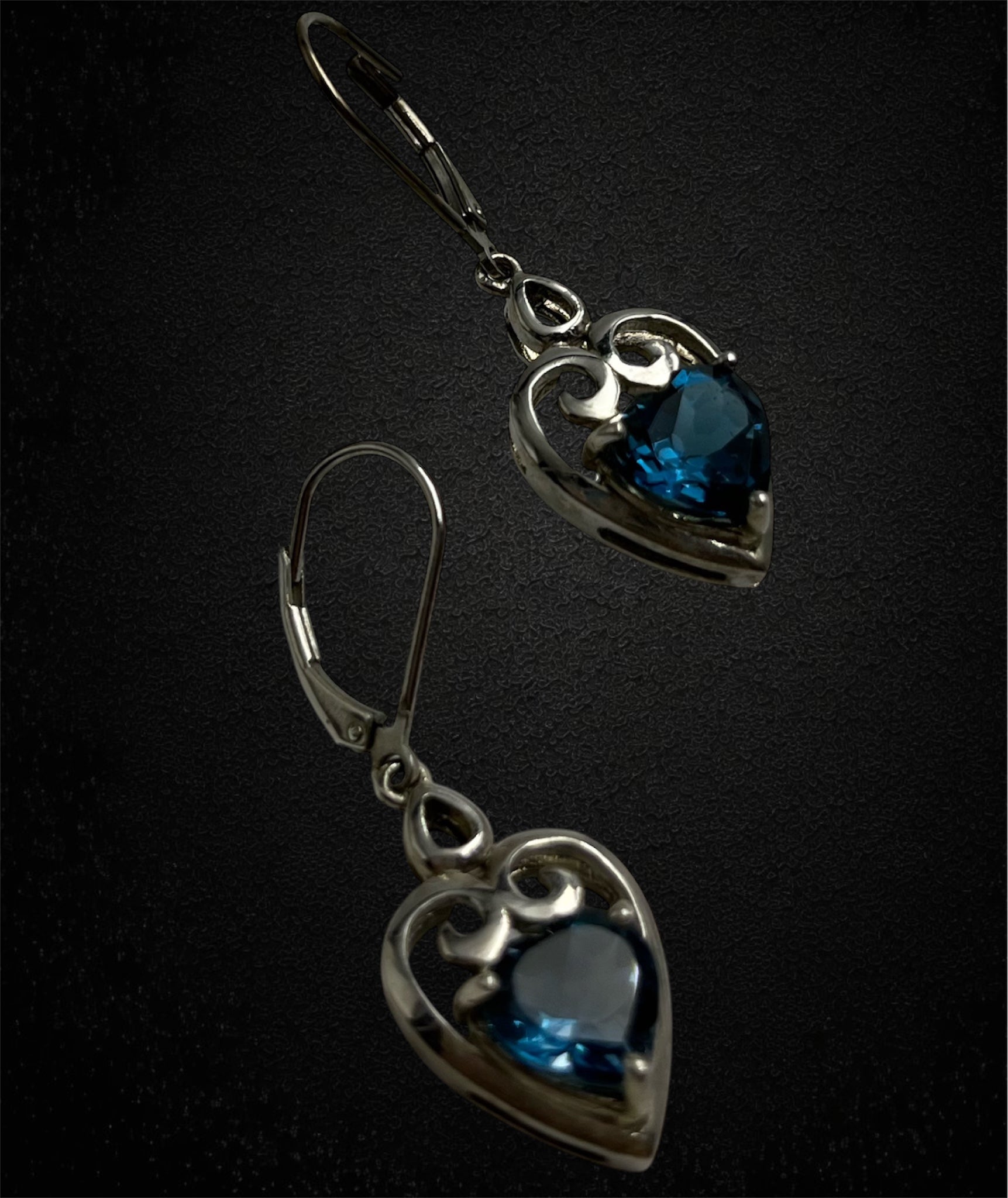 Al centro di ogni pendente, una pietra vetrosa di colore azzurro intenso è sapientemente incastonata, creando un meraviglioso contrasto con l’argento. La tonalità della pietra richiama la profondità del cielo e del mare, conferendo un tocco di freschezza e raffinatezza.